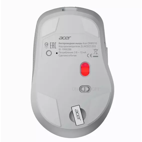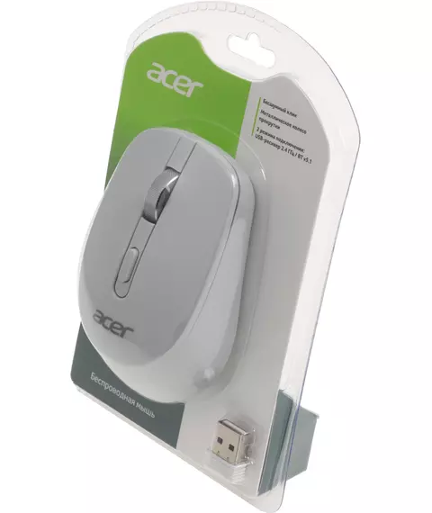 Мышь Acer OMR310 светло-серый оптическая 1600dpi беспров. BT/Radio USB 7but [ZL.MCECC.033]
