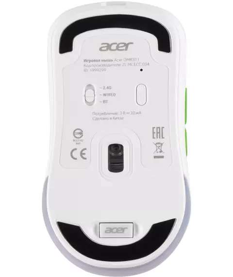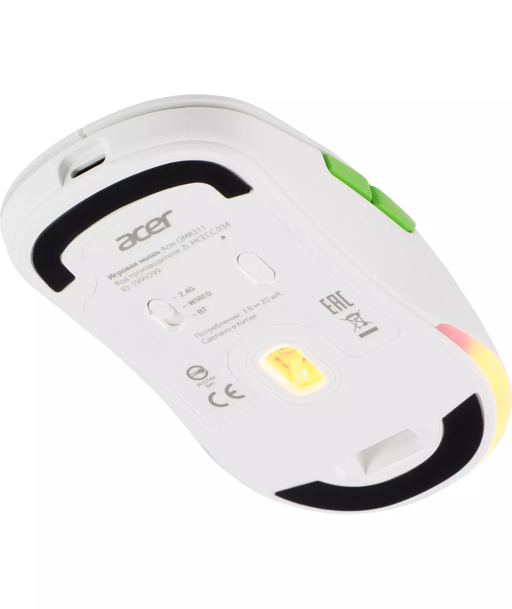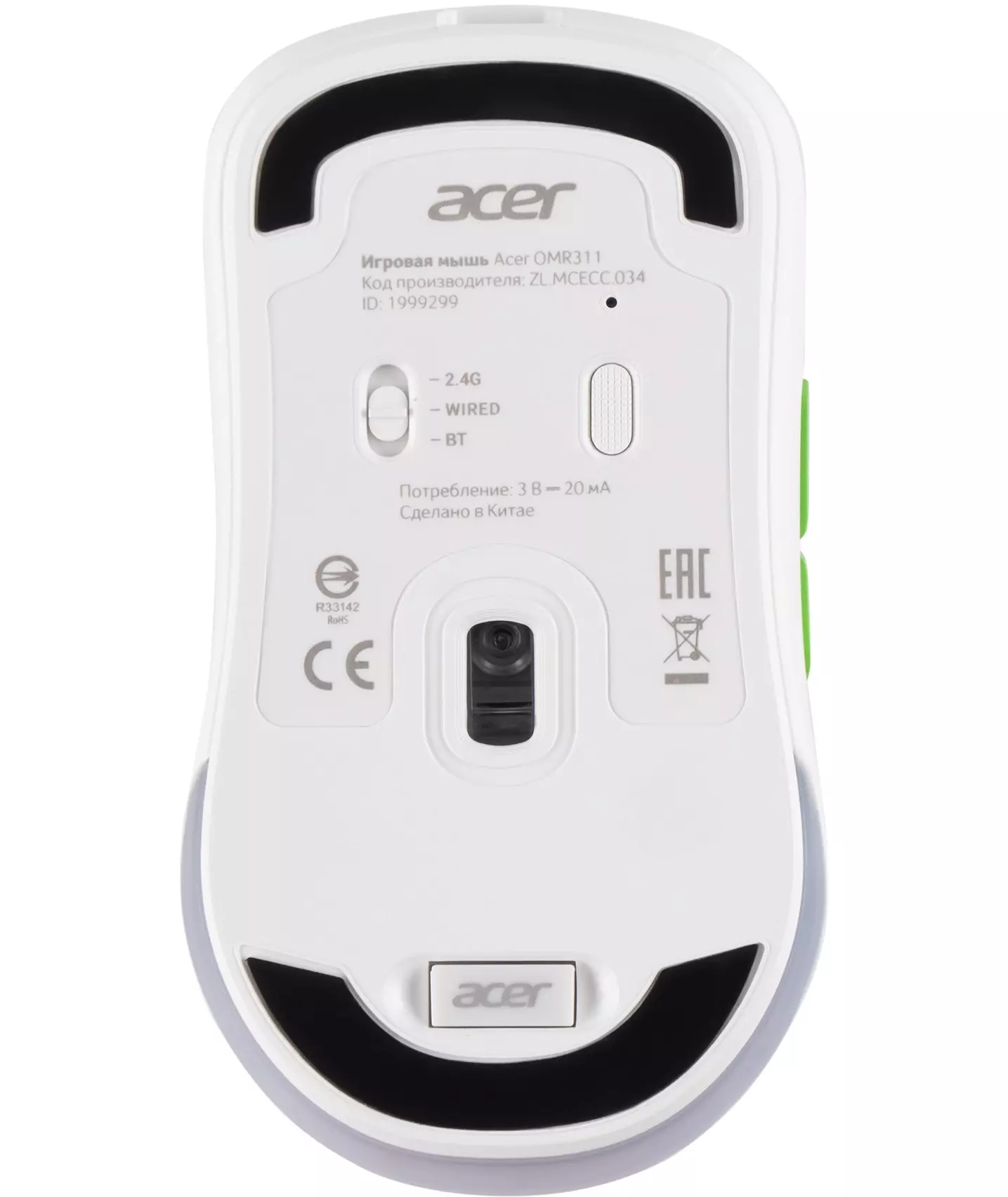 Мышь Acer OMR311 белый оптическая 2400dpi беспров. BT/Radio USB 7but [ZL.MCECC.034]