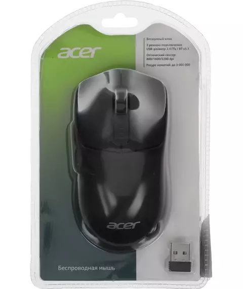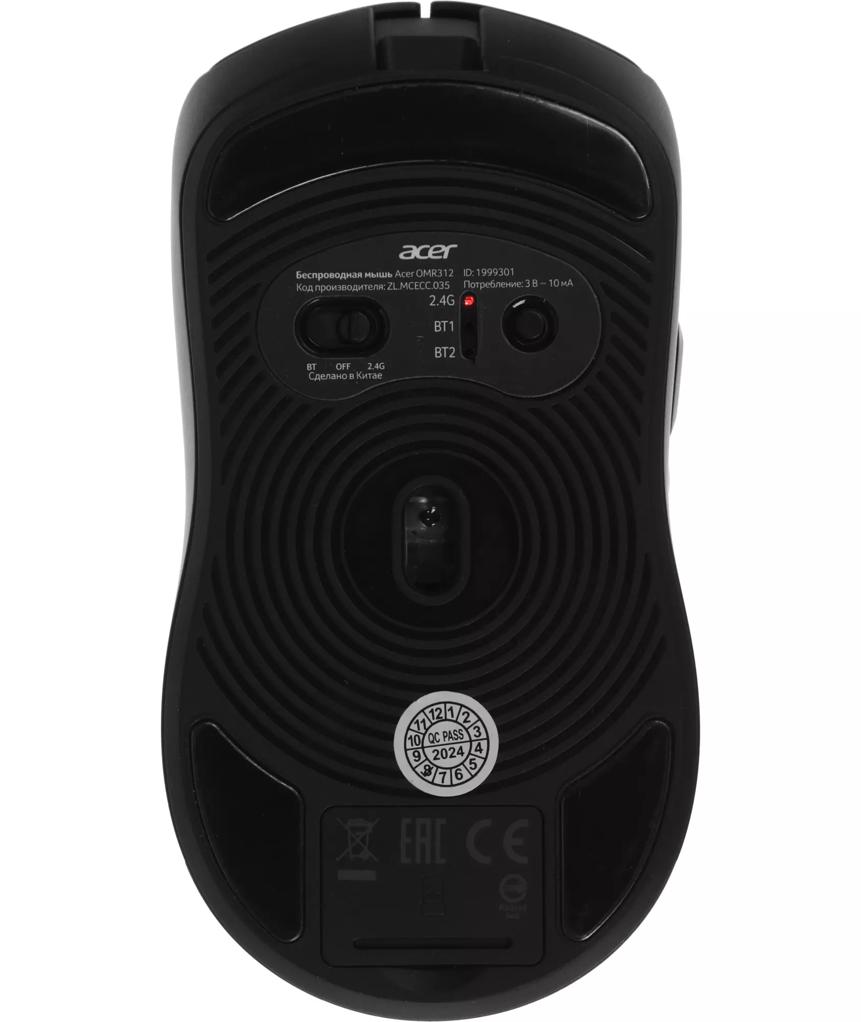 Мышь Acer OMR312 черный оптическая 3200dpi беспров. BT/Radio USB 5but [ZL.MCECC.035]