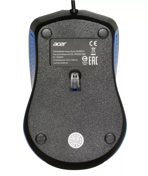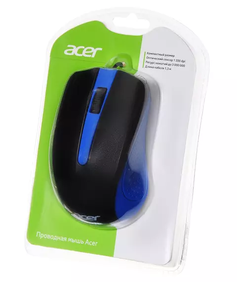 Мышь Acer OMW011 черный/синий оптическая 1200dpi USB 3but [ZL.MCEEE.002]