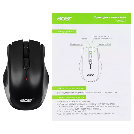 Мышь Acer OMW020 черный оптическая 1600dpi USB 4but [ZL.MCEEE.004]