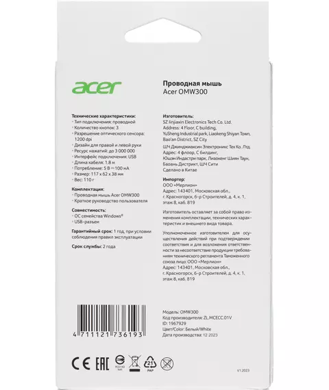 Наличие товара Acer OMW300 [ZL.MCECC.01V]
