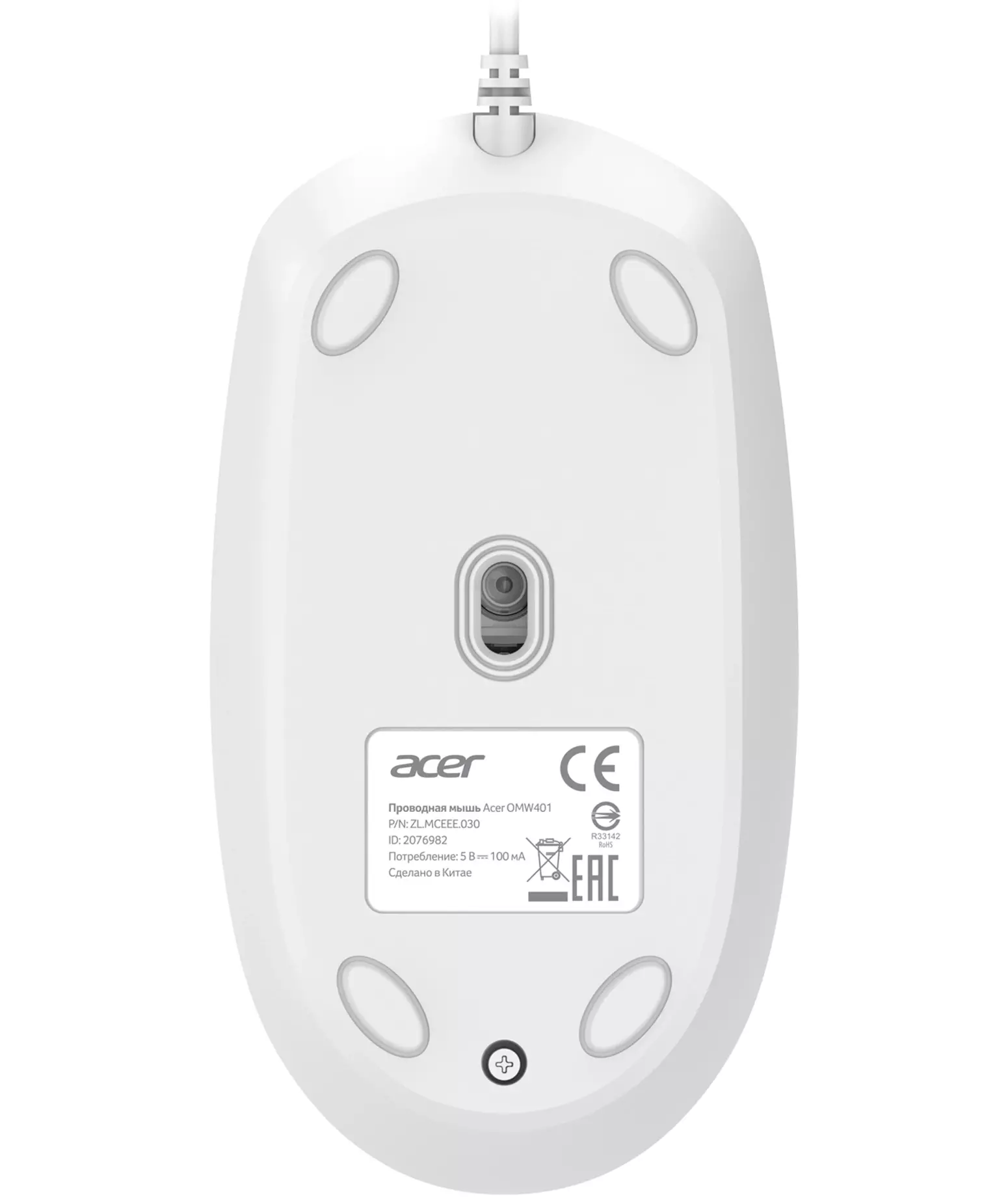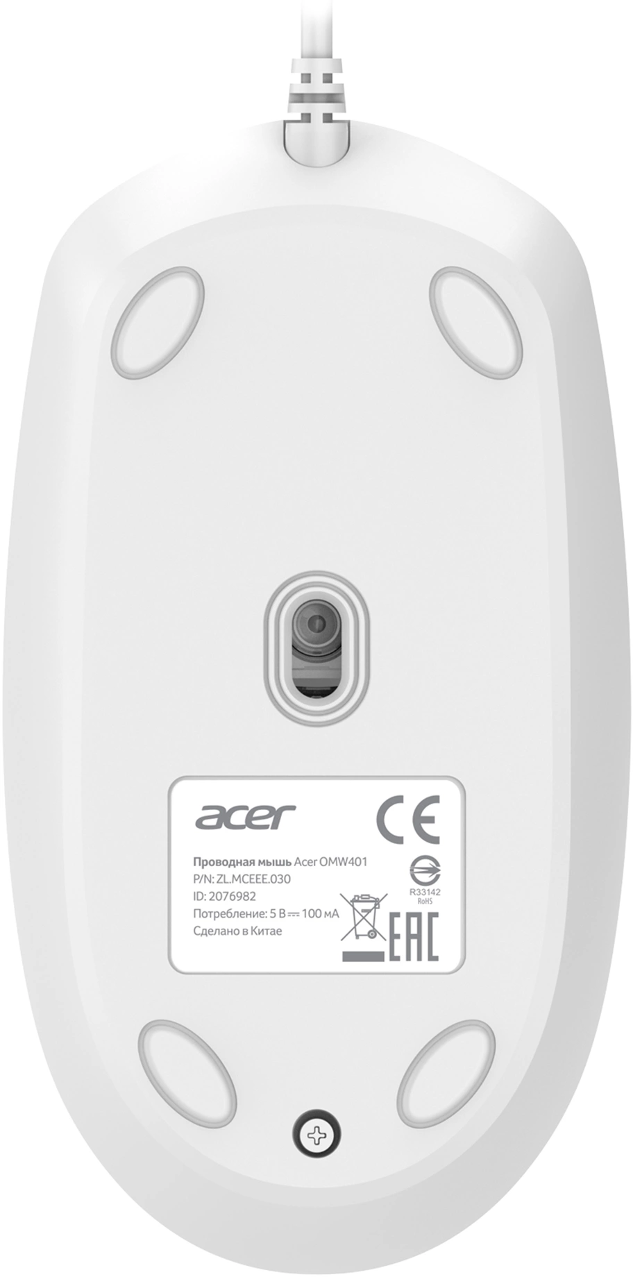 Мышь Acer OMW401 белый оптическая 2000dpi USB 4but [ZL.MCEEE.030]