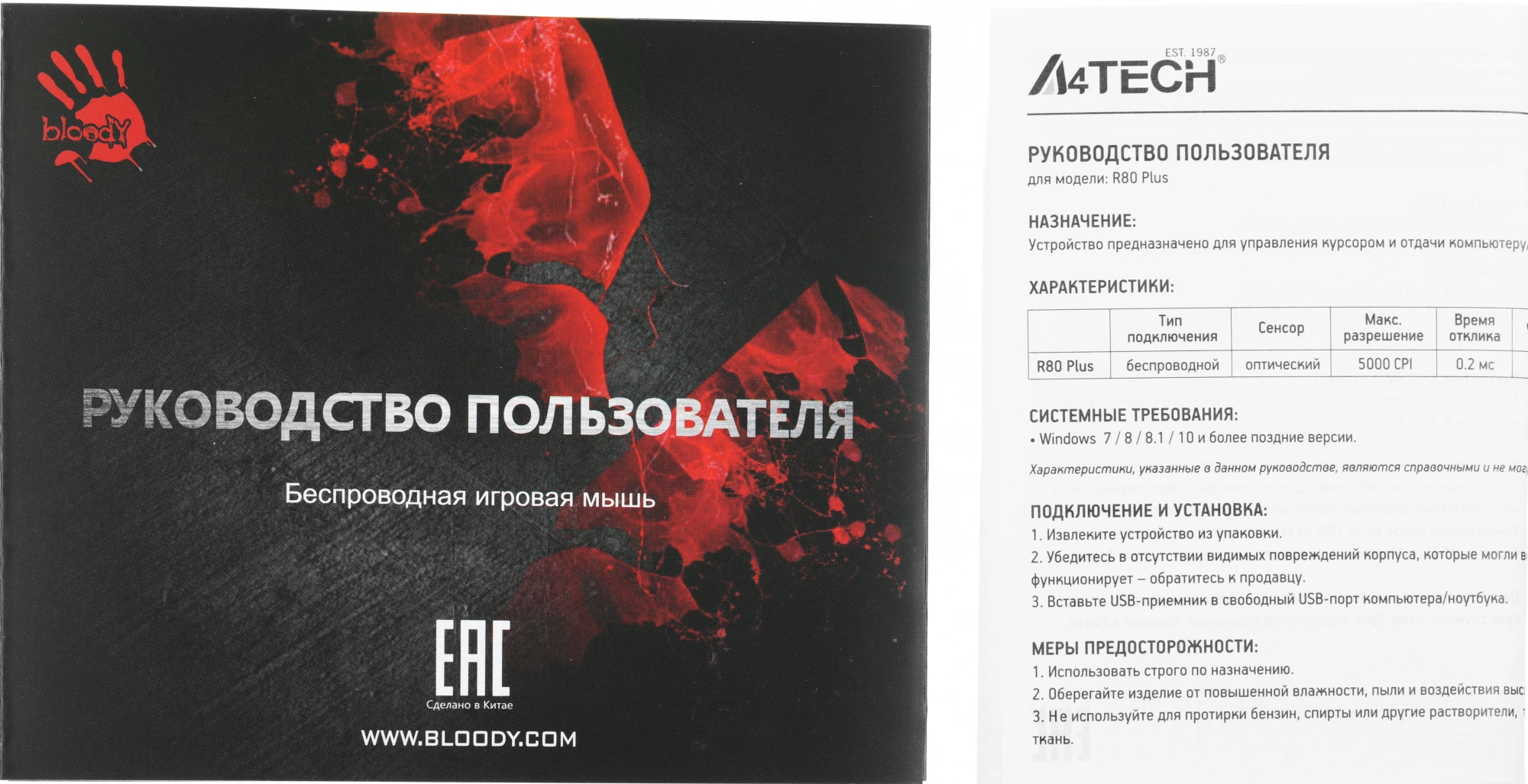 | Размеры мыши | 82x123x43мм |