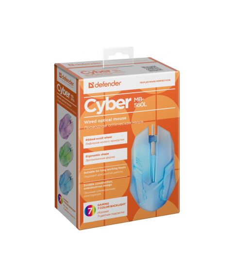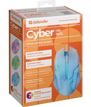 Мышь Defender Cyber MB-560L белый оптическая 1600dpi USB для ноутбука 2but [52561]