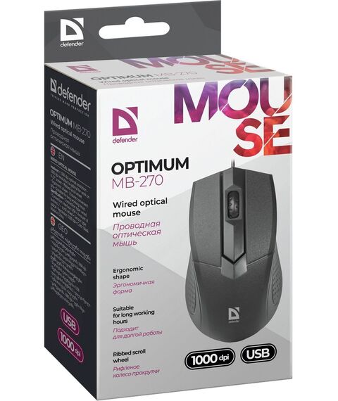 Мышь Defender Optimum MB-270 черный оптическая 1000dpi USB 2but [52270]