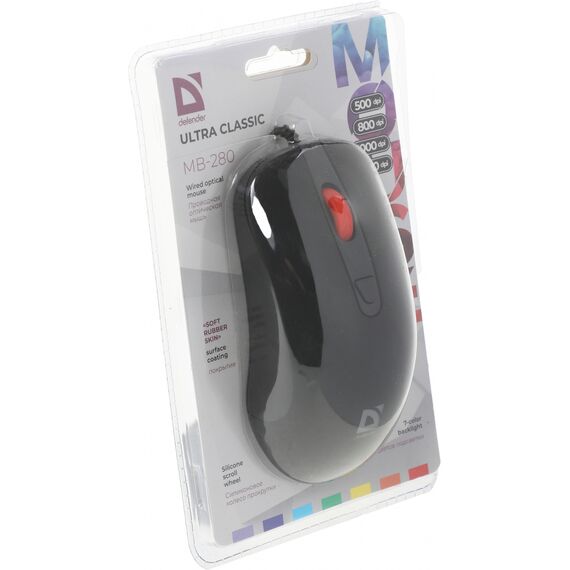 Мышь Defender Ultra Classic MB-280 черный оптическая 1600dpi USB 4but [52281]