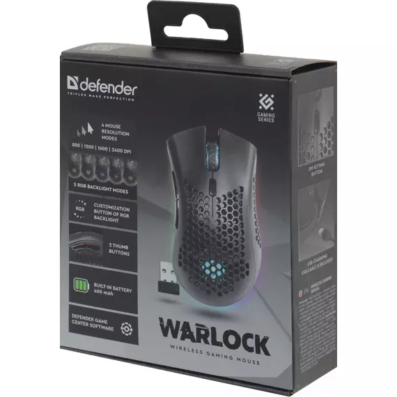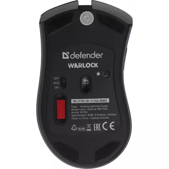 Мышь Defender Warlock GM-709L черный оптическая 2400dpi беспров. USB 7but [52709]