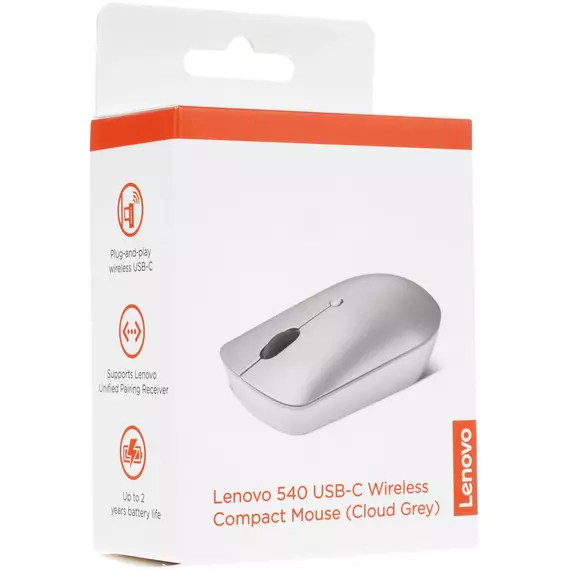 Мышь Lenovo 540 USB-C Wireless Compact светло-серый оптическая 2400dpi беспров. BT/Radio USB [GY51D20869]