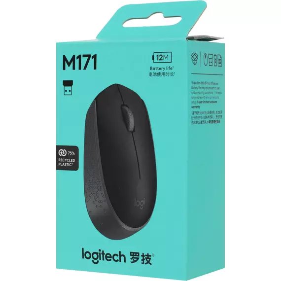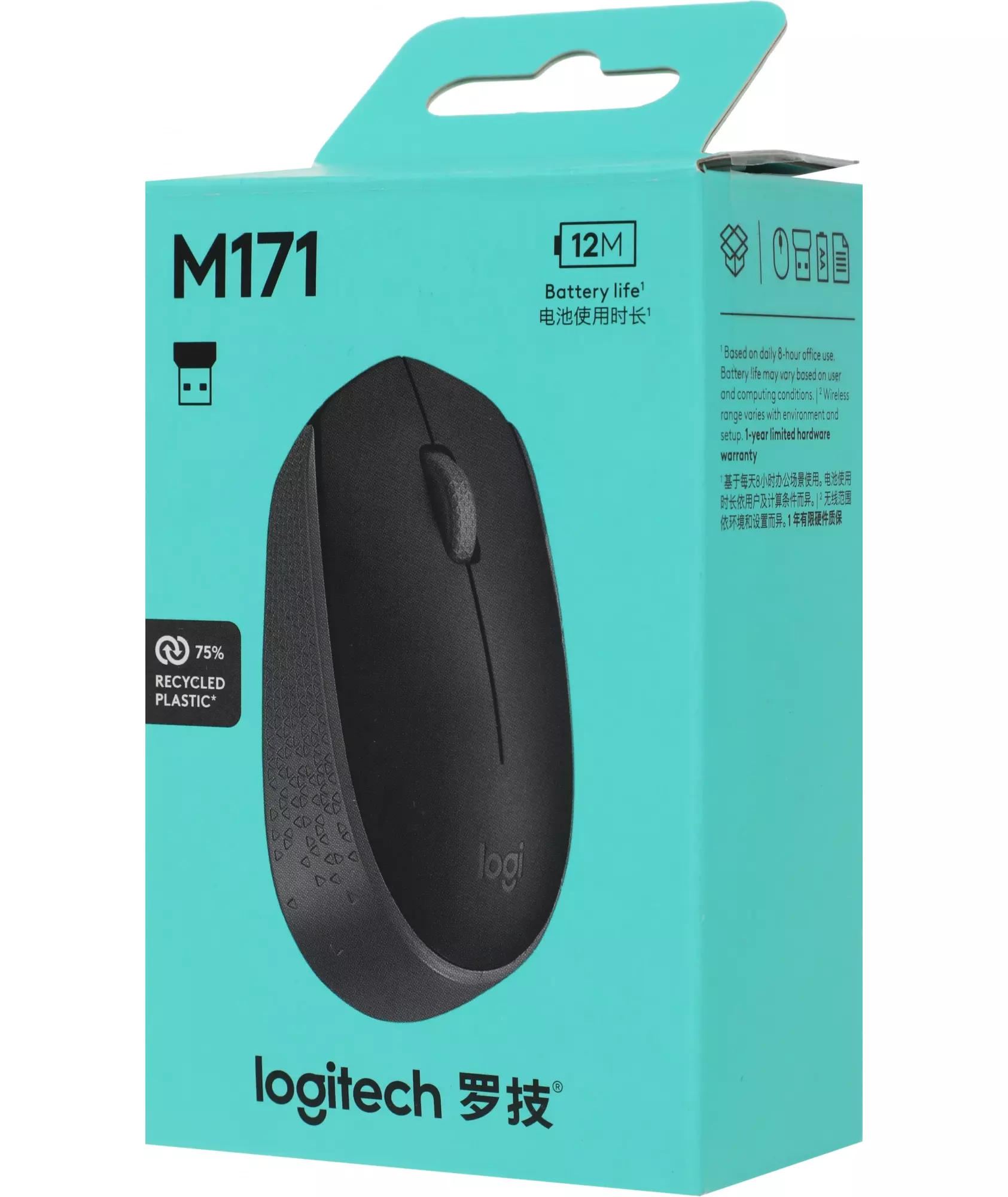 Мышь Logitech M171 черный/серый оптическая 1000dpi беспров. USB для ноутбука 2but [910-004643]