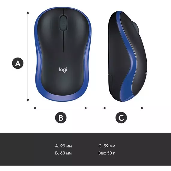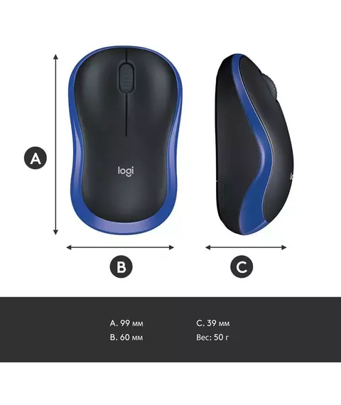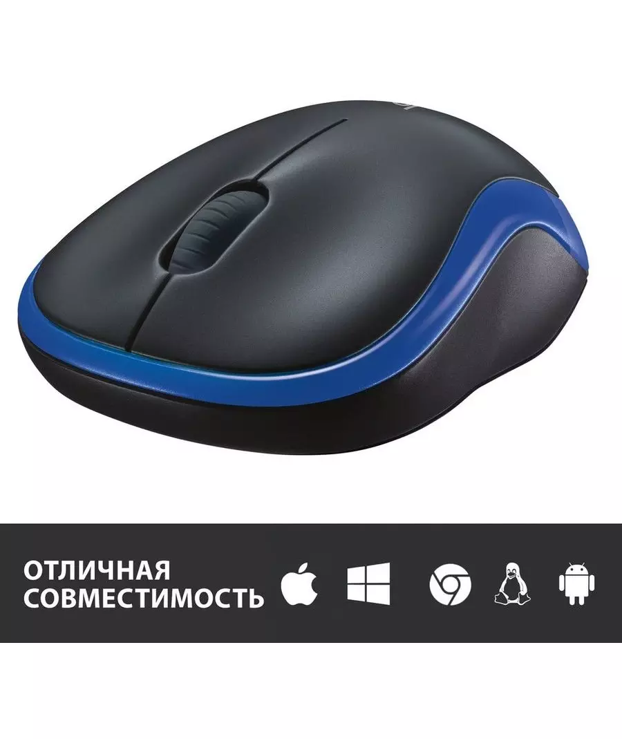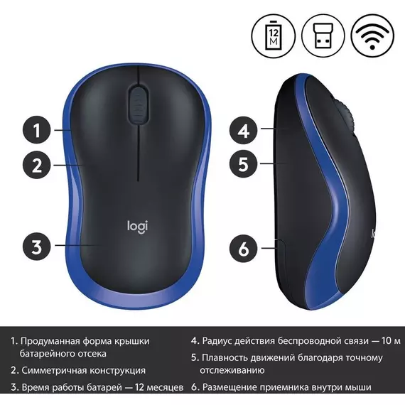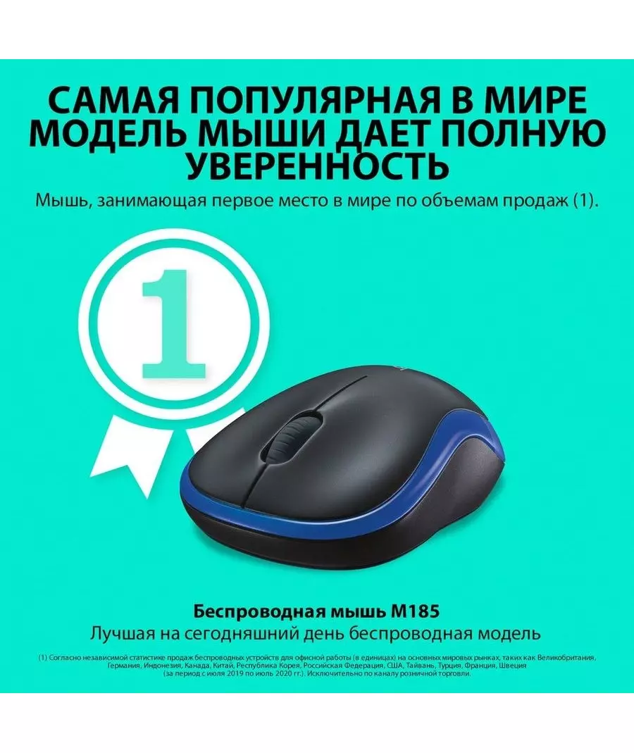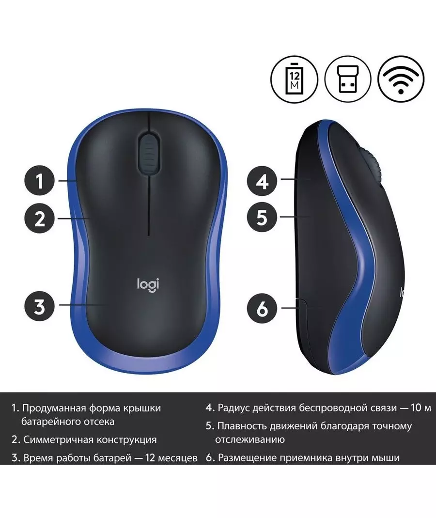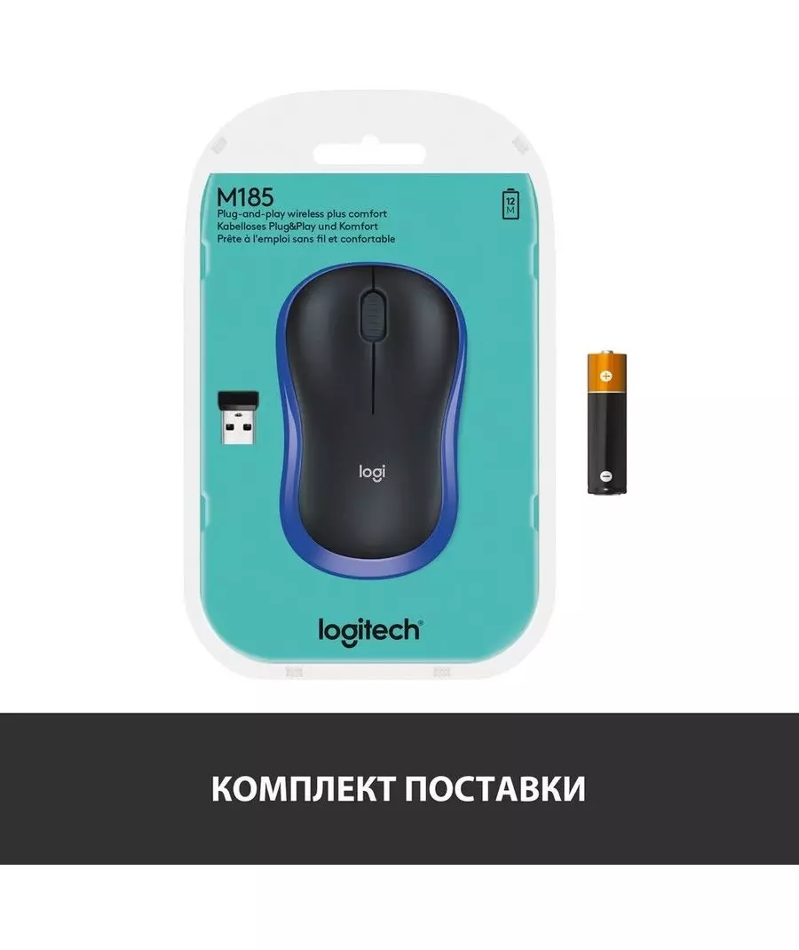 Мышь Logitech M185 черный/синий оптическая 1000dpi беспров. USB1.1 для ноутбука 2but [910-002632]