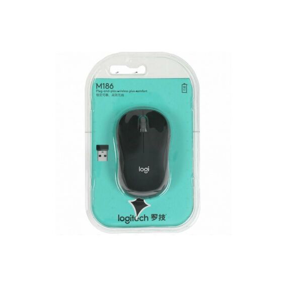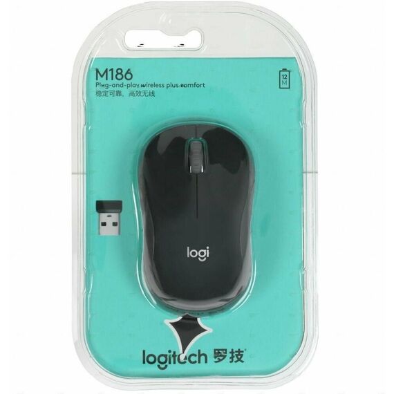 Мышь Logitech M186 черный/серый оптическая 1000dpi беспров. USB для ноутбука 2but [910-004131]