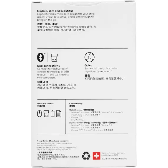 Мышь Logitech Pebble M350 темно-серый оптическая 1000dpi беспров. BT/Radio USB 2but [910-005576]