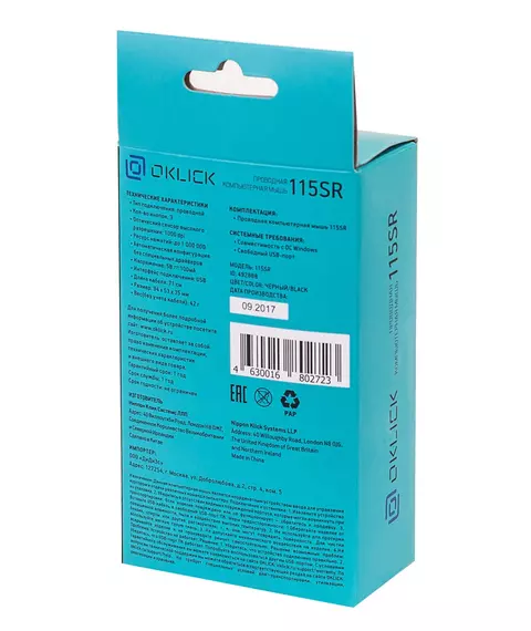 Мышь Oklick 115SR черный оптическая 1000dpi USB для ноутбука 3but [492888]