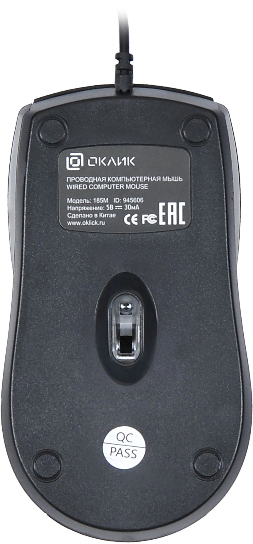 Мышь Oklick 185M черный оптическая 1200dpi USB для ноутбука 3but [945606]