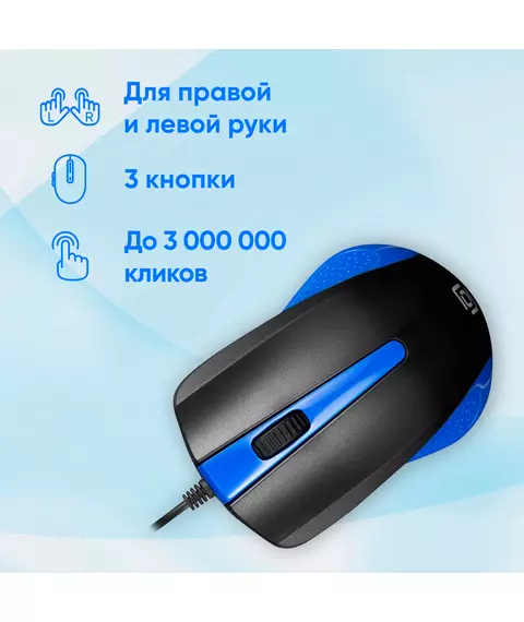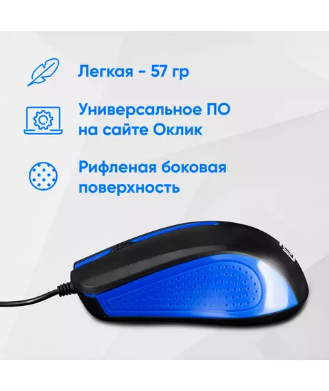Мышь Oklick 225M черный/синий оптическая 1200dpi USB 3but [288233]