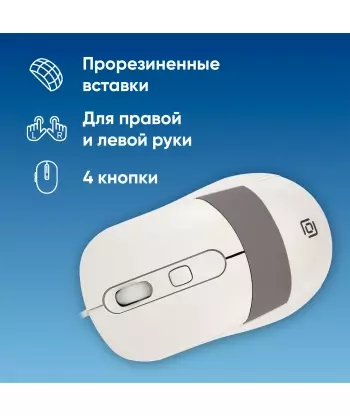 Мышь Oklick 310M белый/серый оптическая 2400dpi USB для ноутбука 4but [1869103]