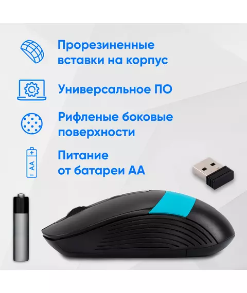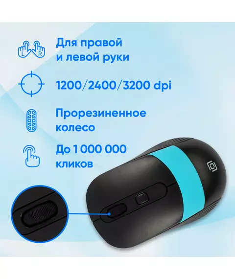 Мышь Oklick 310MW черный/синий оптическая 3200dpi беспров. USB для ноутбука 4but [1869090]