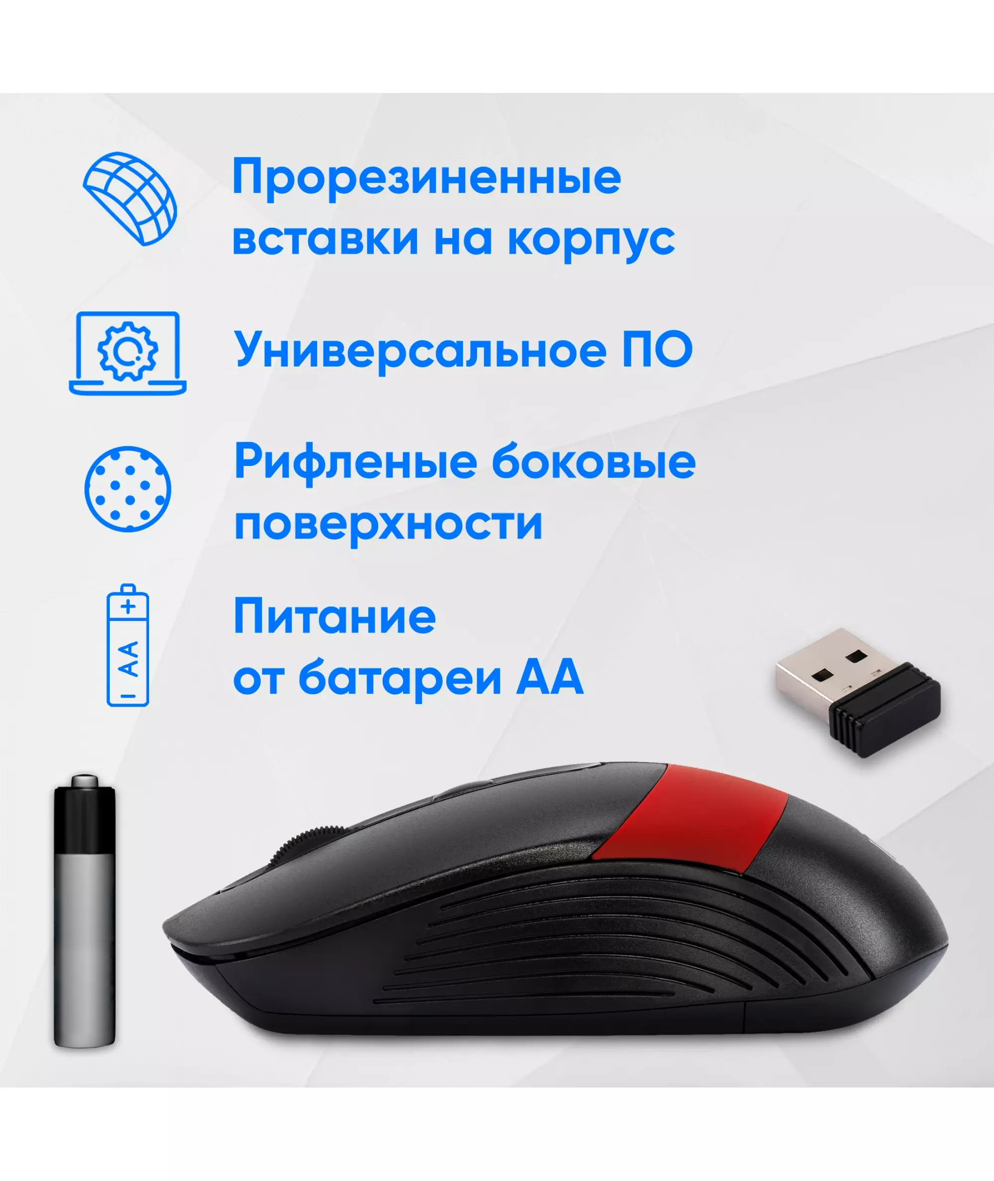 | Особенности | Удобная компьютерная мышь с прорезиненными цветными вставками на корпусе, рифлеными боковыми поверхностями. Прорезиненное колесо. Возможность выбора оптимального разрешения, легкий вес.Специальное ПО расширяющее возможности мышки |