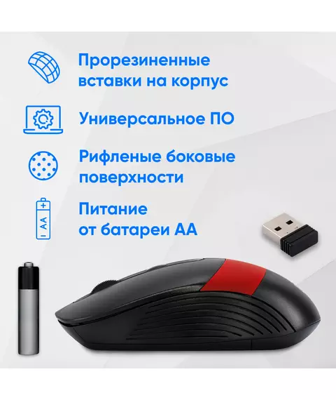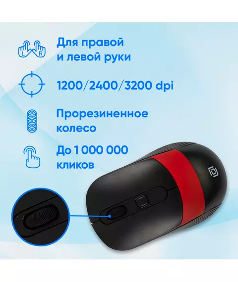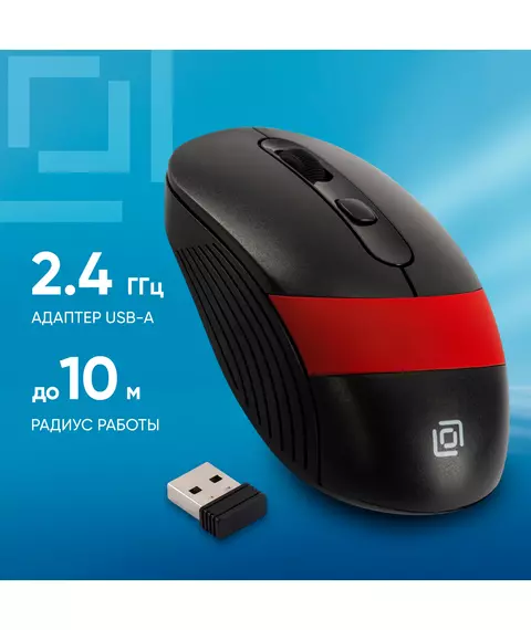 Мышь Oklick 310MW черный/красный оптическая 3200dpi беспров. USB для ноутбука 4but [1869093]