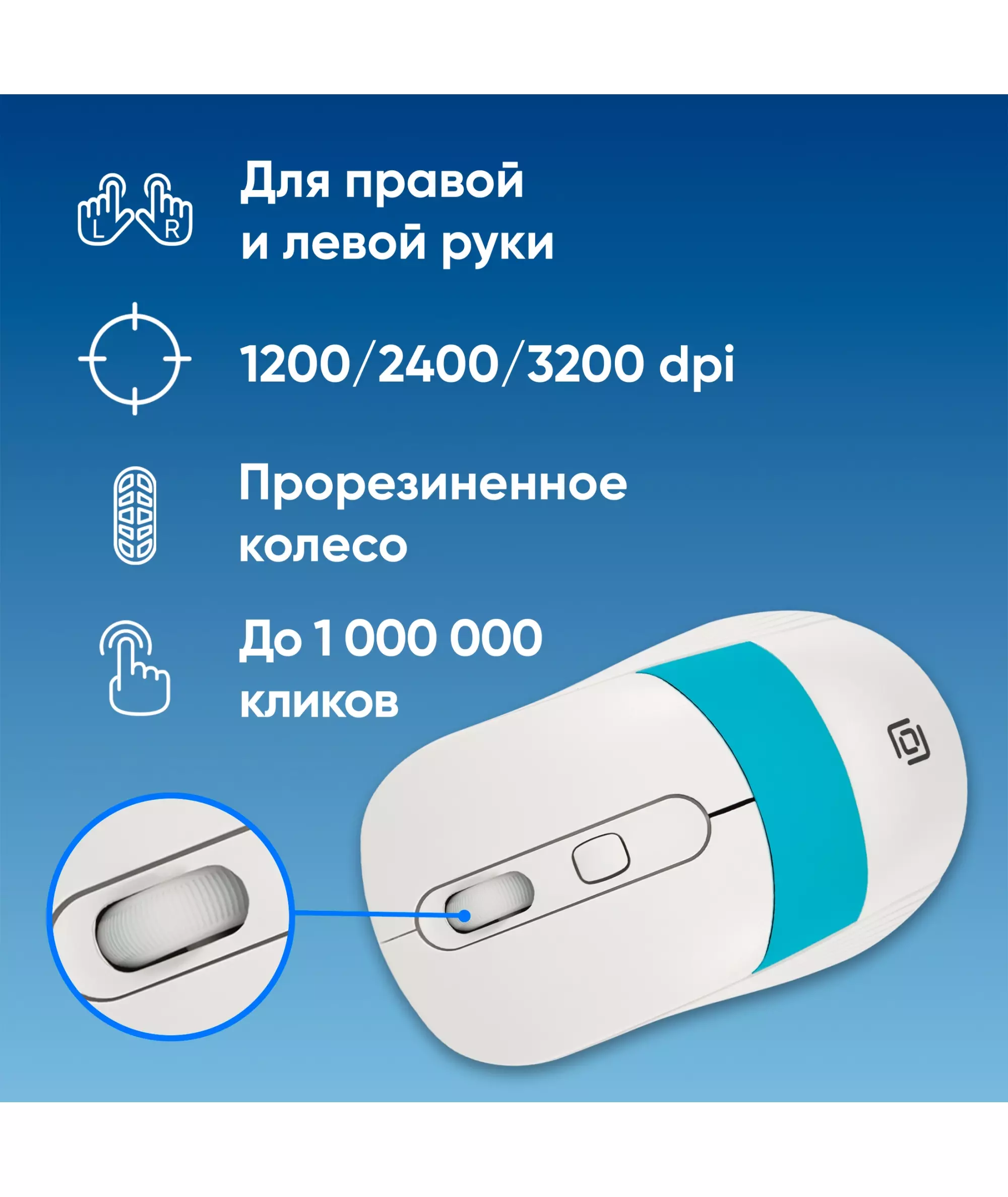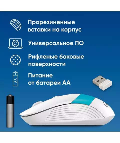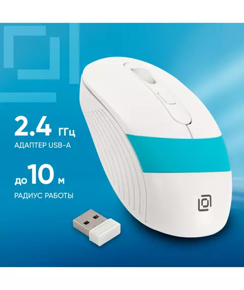 Мышь Oklick 310MW белый/синий оптическая 3200dpi беспров. USB для ноутбука 4but [1869094]