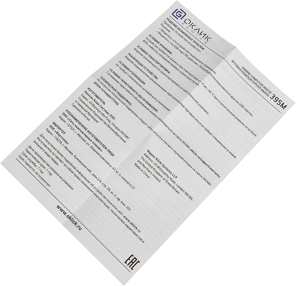 Наличие товара Oklick 395M SHADOW [1102286]