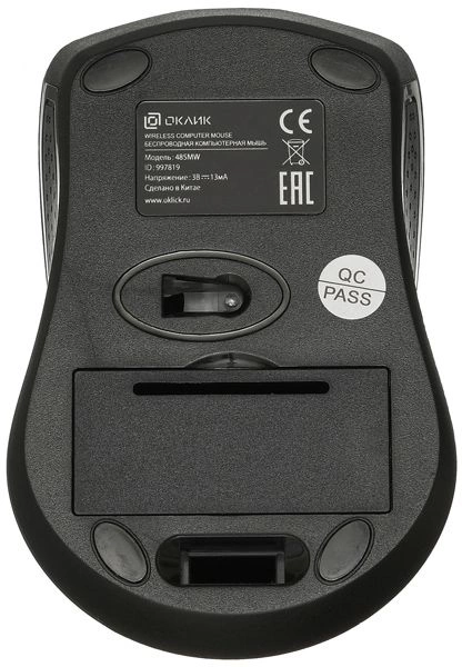 Мышь Oklick 485MW черный оптическая 1600dpi беспров. USB для ноутбука 3but [997819]