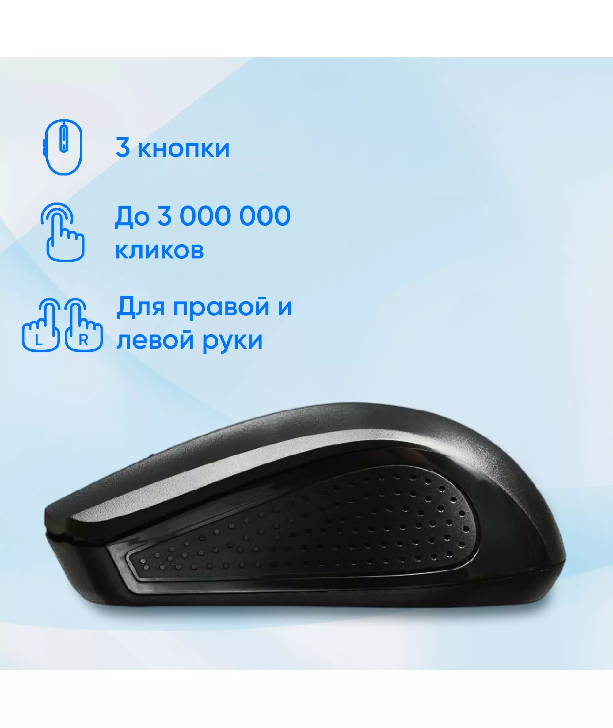 | Особенности | Симметричная компьютерная беспроводная мышь. Удобная форма. Оптимальное разрешение сенсора. Специальное ПО расширяющее функциональные возможности мышки. |