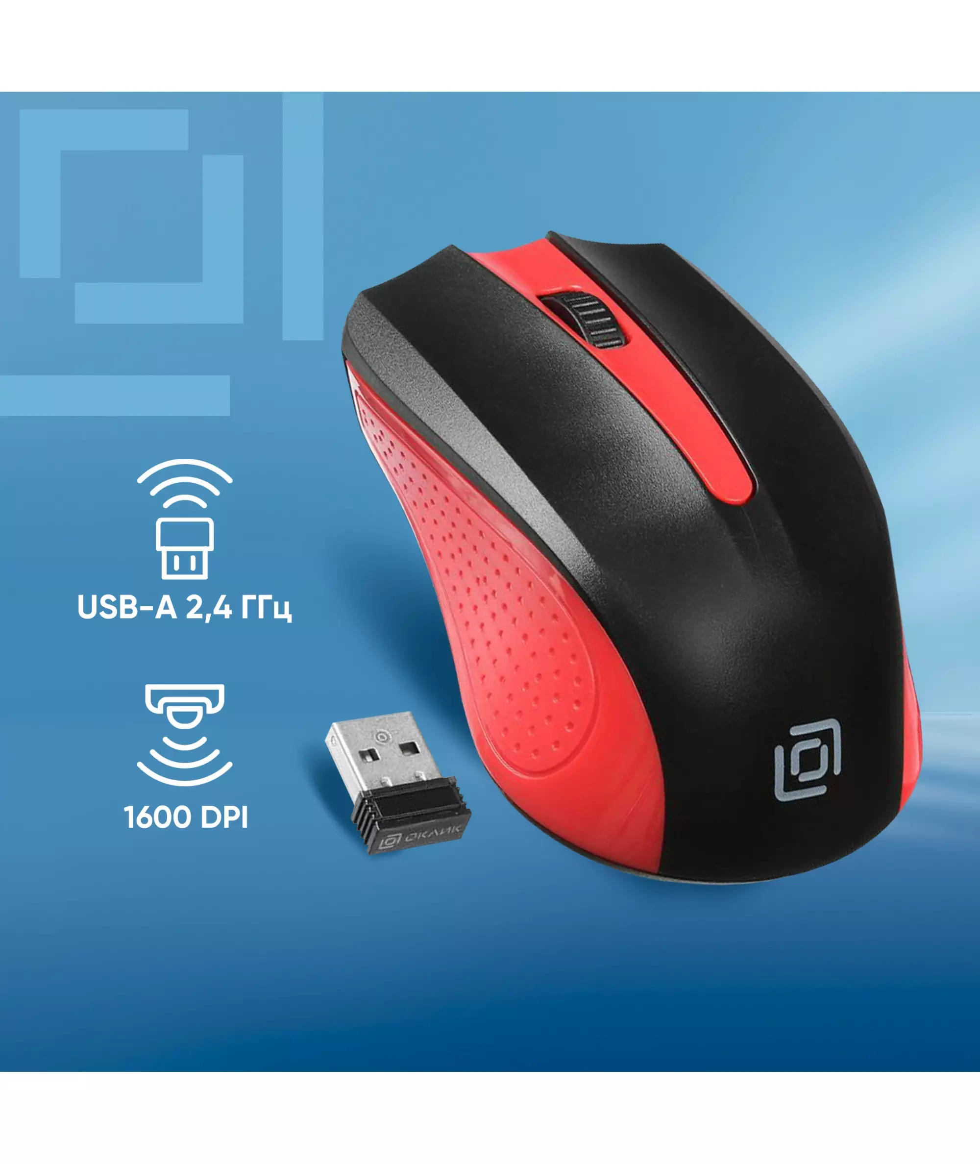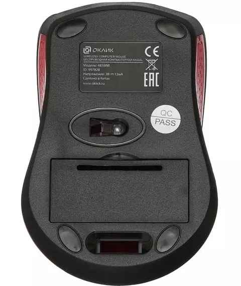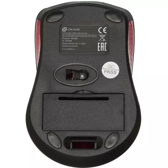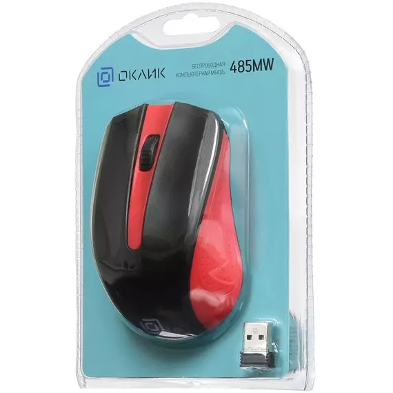 Мышь Oklick 485MW черный/красный оптическая 1600dpi беспров. USB для ноутбука 3but [997828]