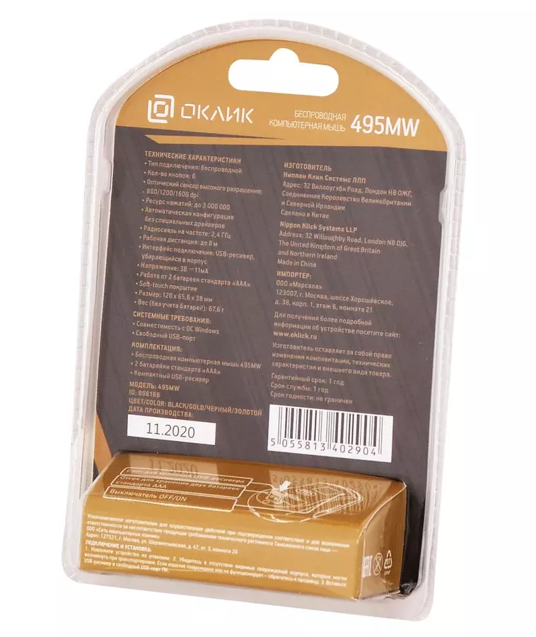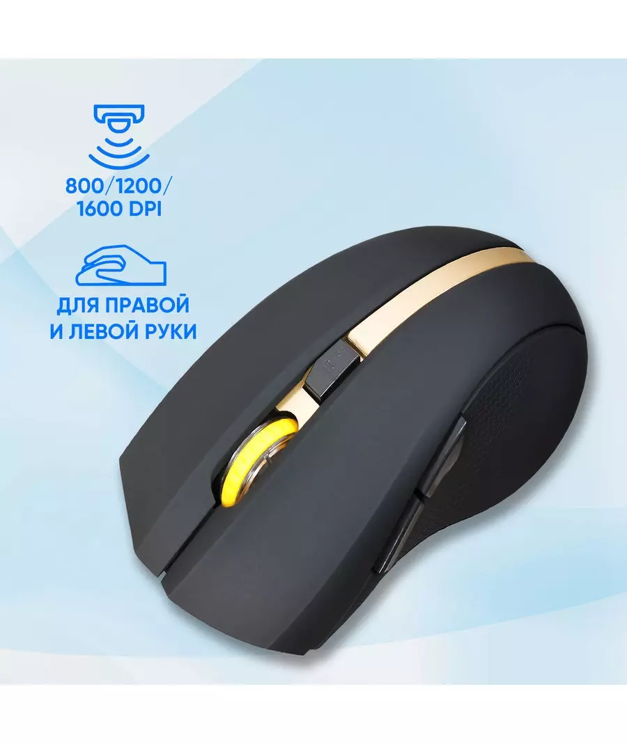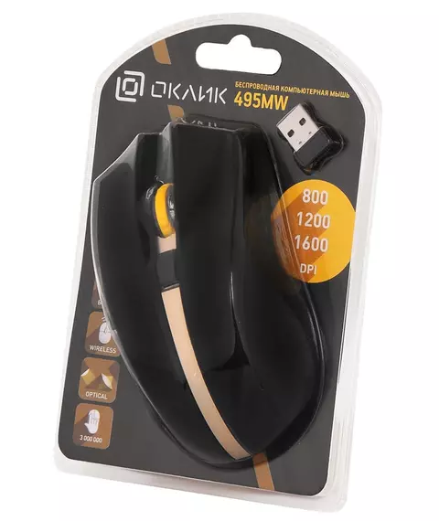 Мышь Oklick 495MW черный/золотистый оптическая 1600dpi беспров. USB для ноутбука 6but [998168]