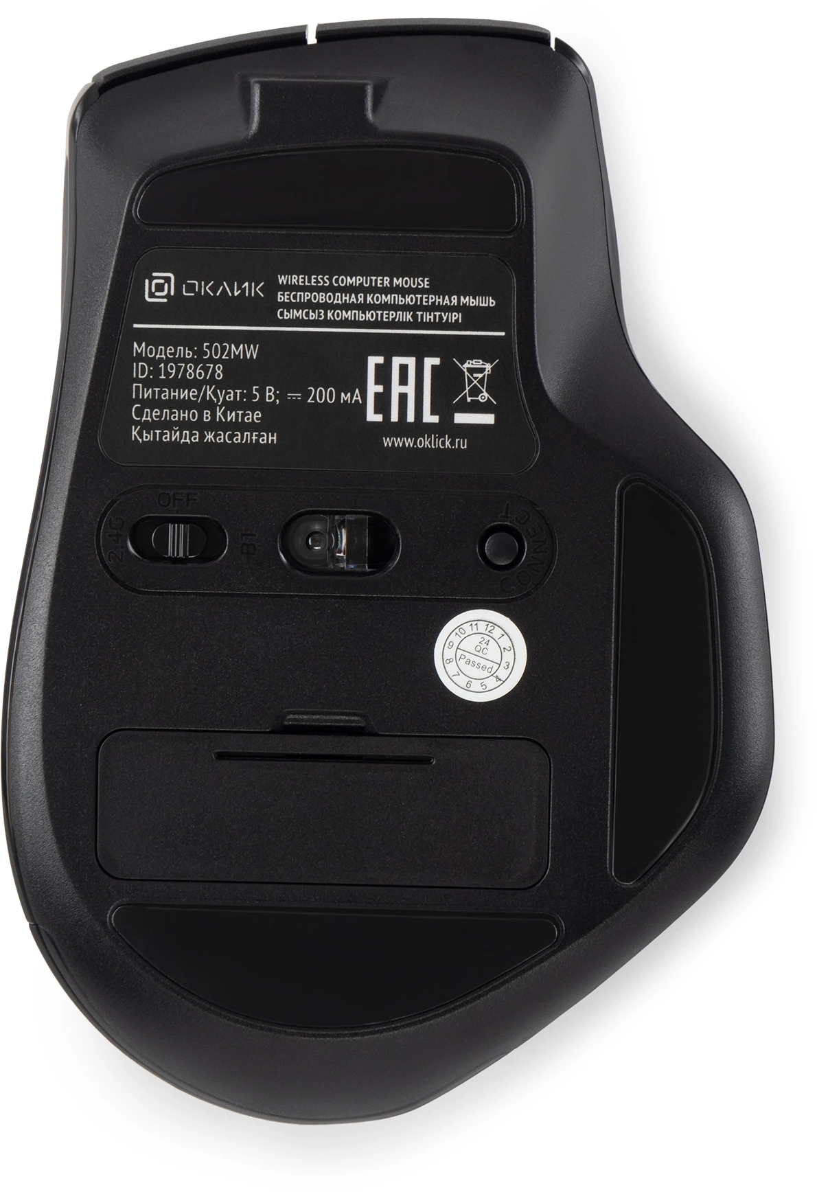 Мышь Oklick 502MW черный оптическая 2400dpi silent беспров. BT/Radio USB для ноутбука 9but [1978678]