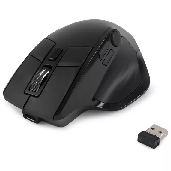 | Особенности | OLED дисплей, встроенные функции управления, в т.ч. переназначения кнопок, тефлоновые ножки, поддержка двух устройств, УФ матовое покрытие корпуса, эргономичная, поддержка Bluetooth, работа в проводном режиме, бесшумный клик, до 55 часов работы от аккумулятора |