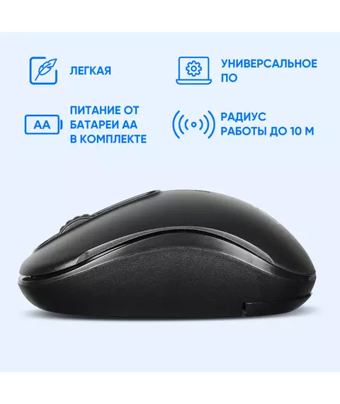 | Особенности | Беспроводная компьютерная мышь симметричной формы. Матовая немаркая поверхность. Оптимально подобранное разрешение работы. Батарейки в комплекте.Специальное ПО расширяющее функциональные возможности мышки. |