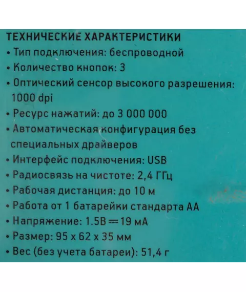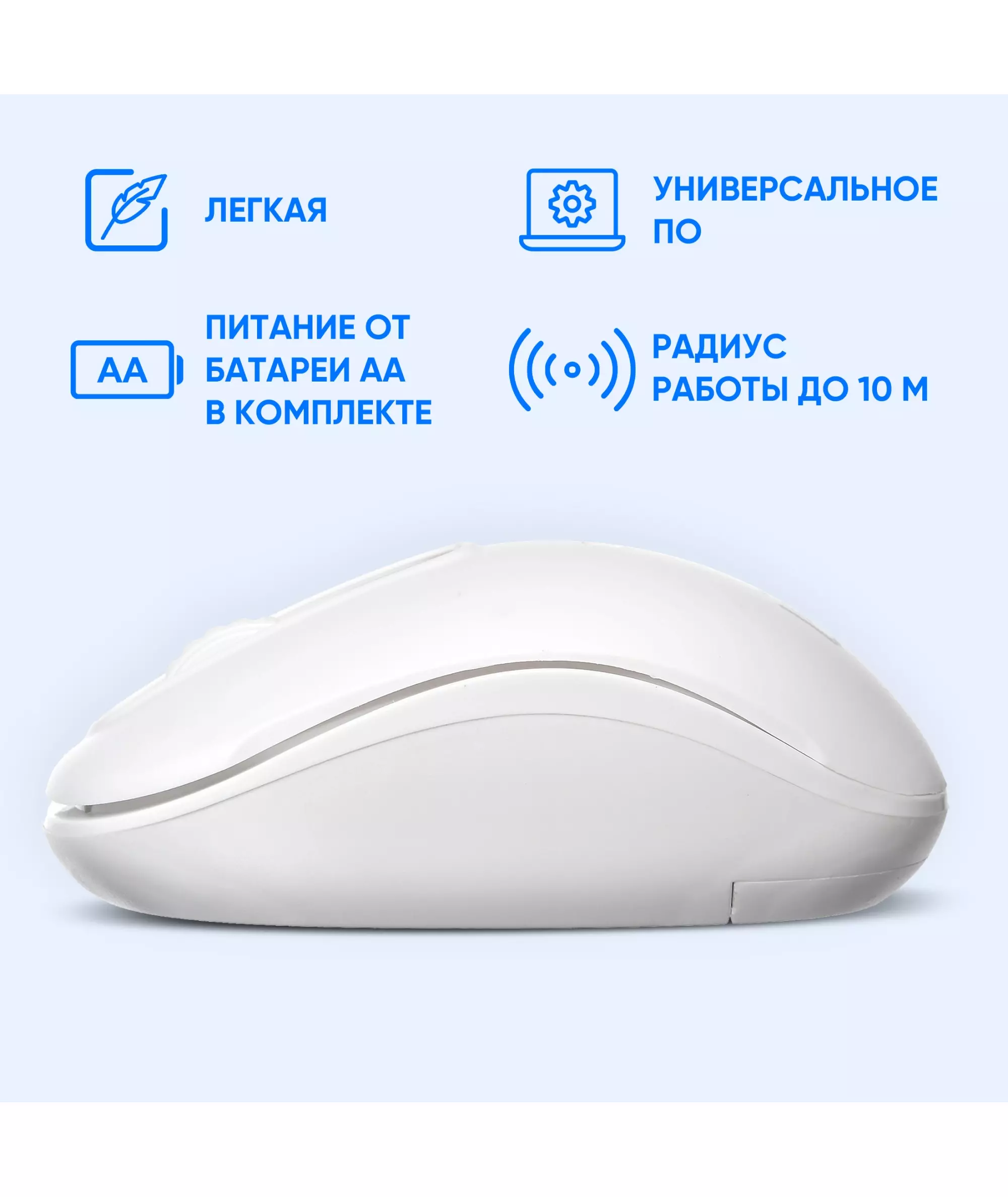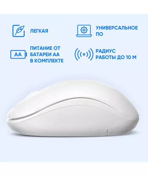 | Особенности | Беспроводная компьютерная мышь симметричной формы. Матовая немаркая поверхность. Оптимально подобранное разрешение работы. Батарейки в комплекте. Специальное ПО расширяющее функциональные возможности мышки. |