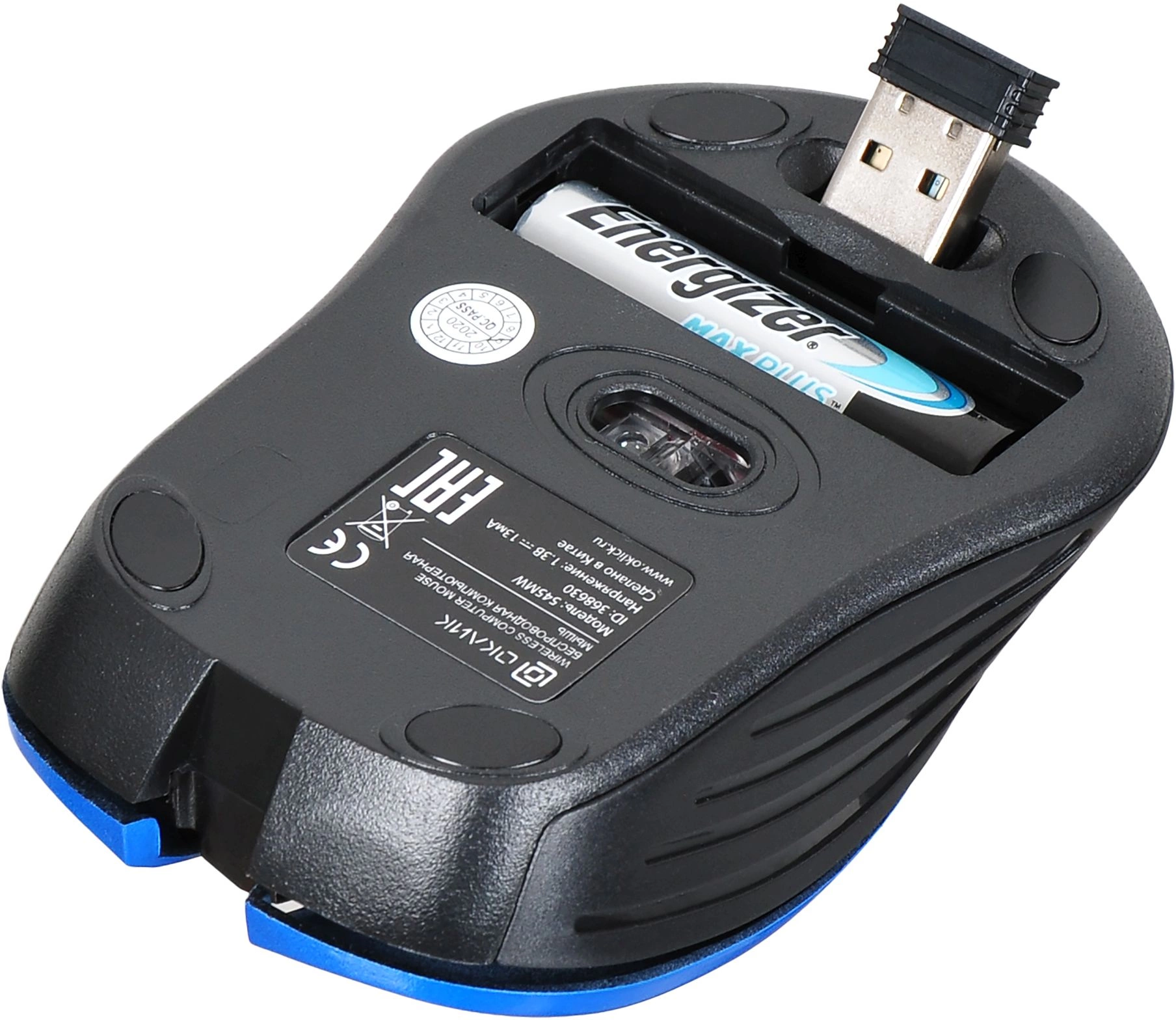 Мышь Oklick 545MW черный/синий оптическая 1600dpi беспров. USB для ноутбука 4but [368630]