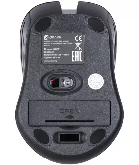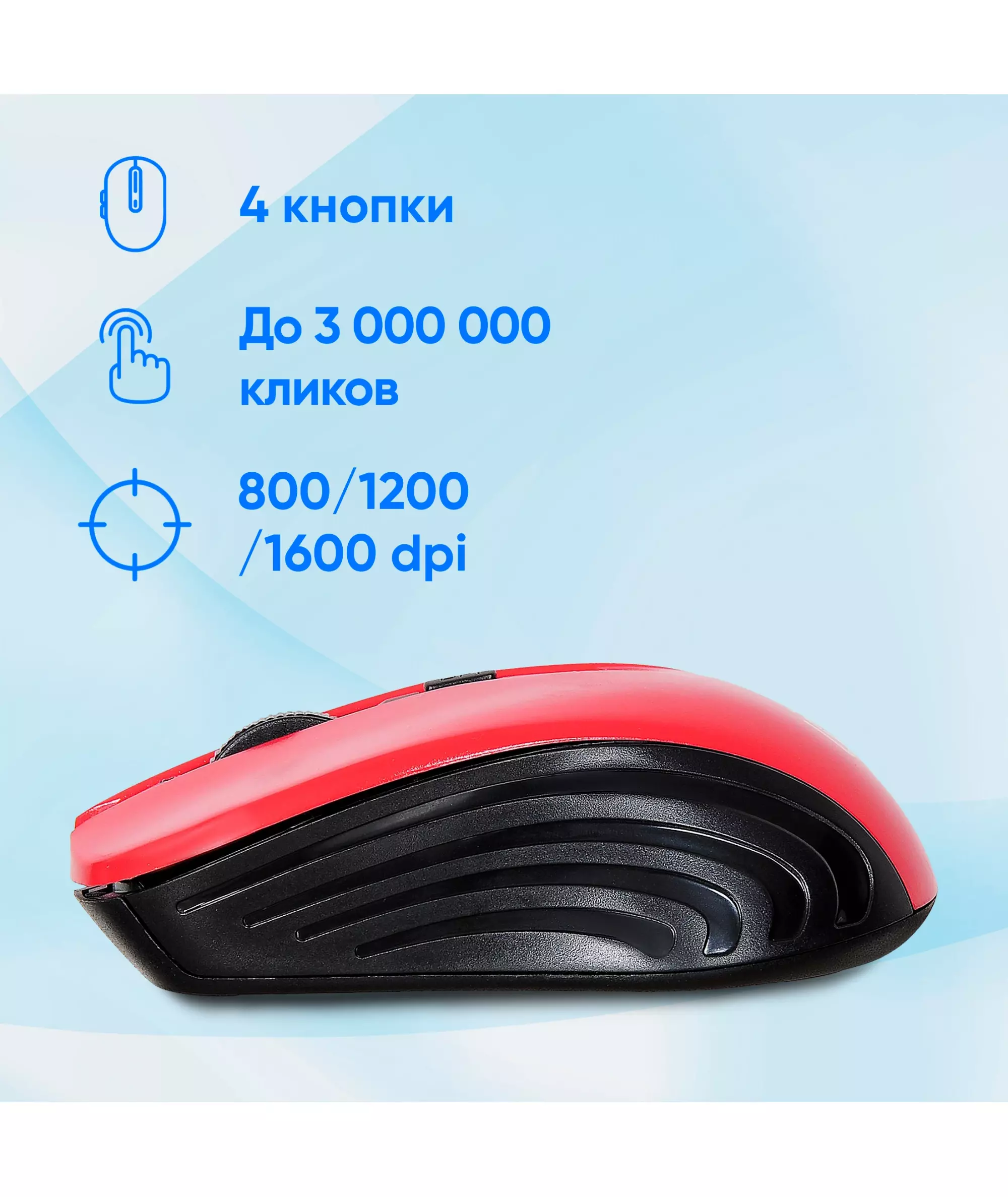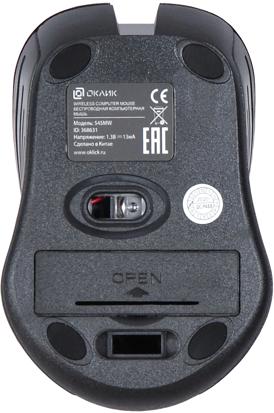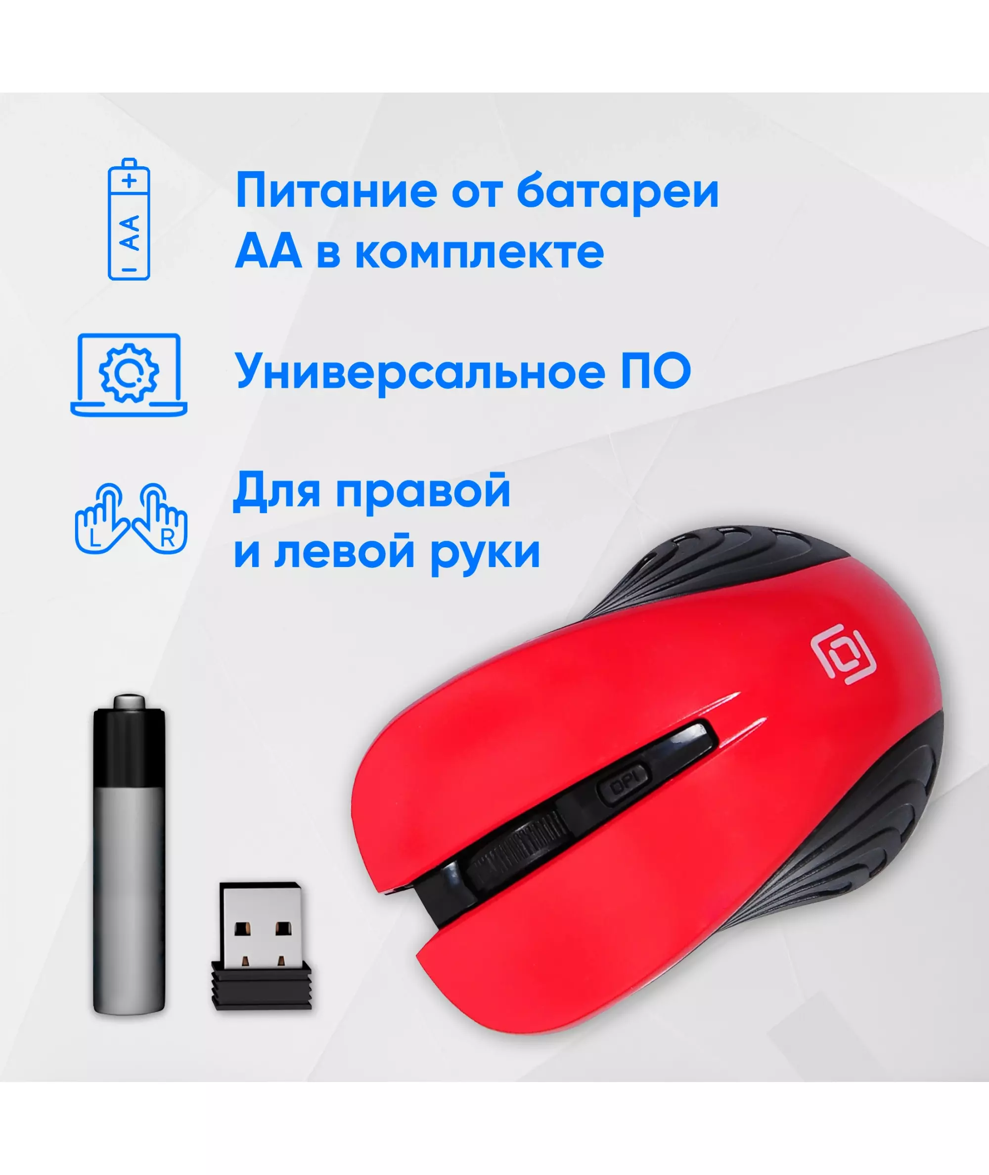 Мышь Oklick 545MW черный/красный оптическая 1600dpi беспров. USB для ноутбука 4but [368631]