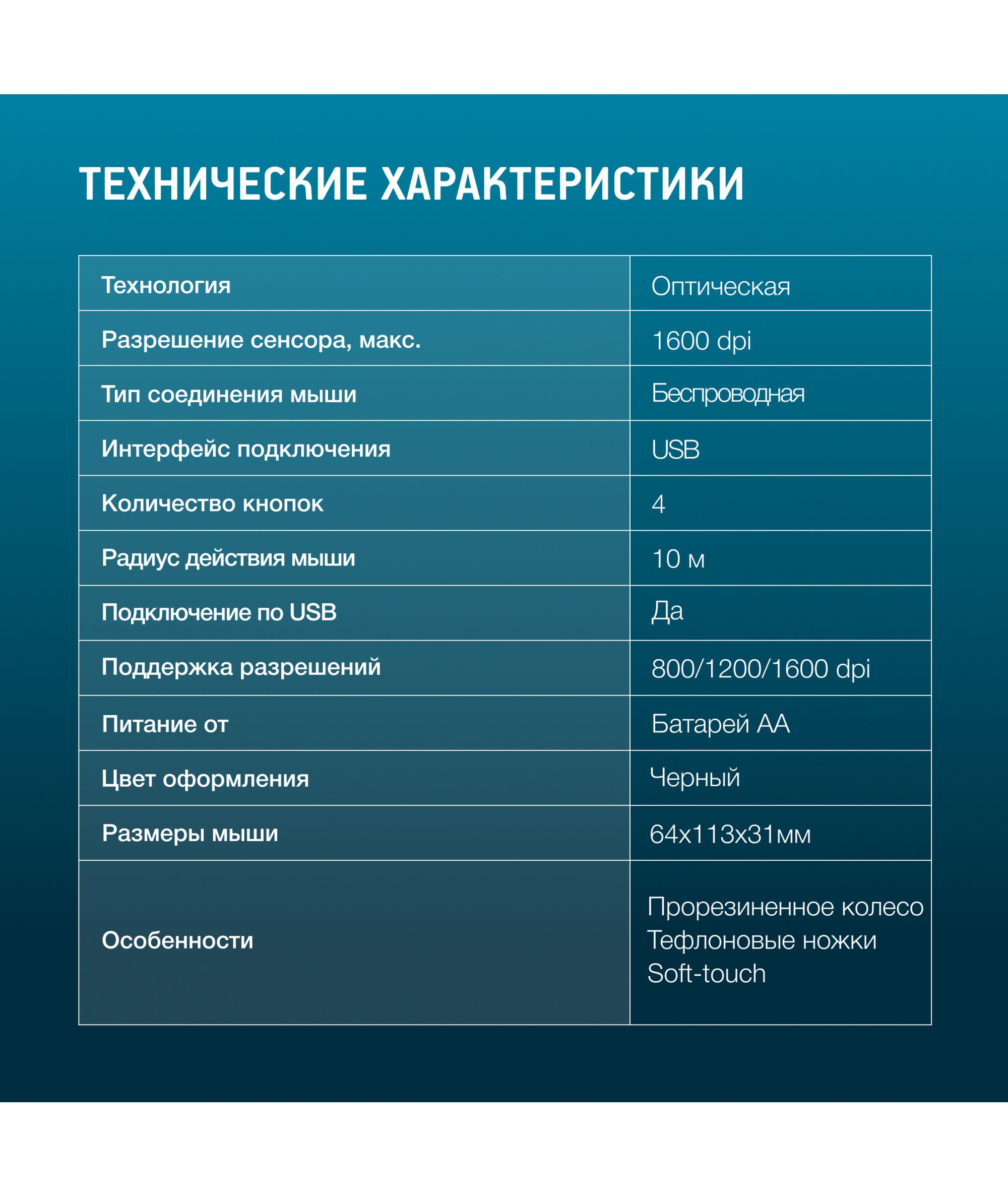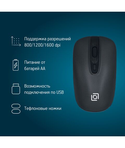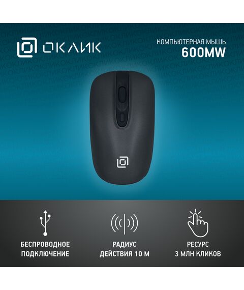 Мышь Oklick 600MW черный оптическая 1600dpi беспров. USB 4but [1487915]