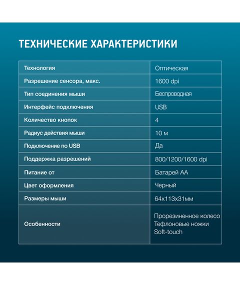 | Особенности | Беспроводная компьютерная мышь. Прорезиненное колесо, матовая поверхность sof-touch, возможность выбора оптимального разрешения. Тефлоновые ножки. Кнопка выключения на нижней поверхности мышки.Специальное ПО расширяющее функциональные возможности мышки. |