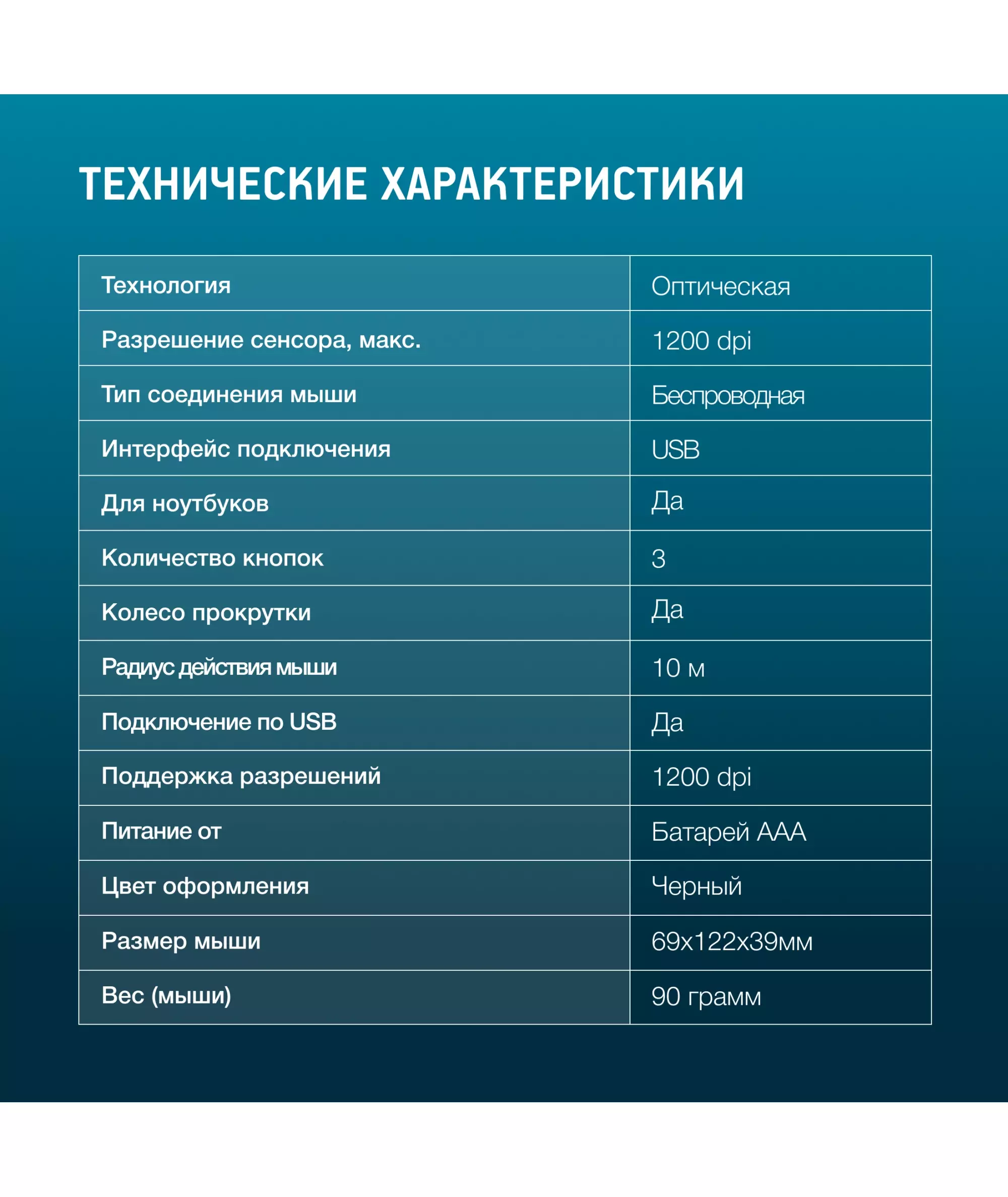 | Радиус действия мыши | 10 м |