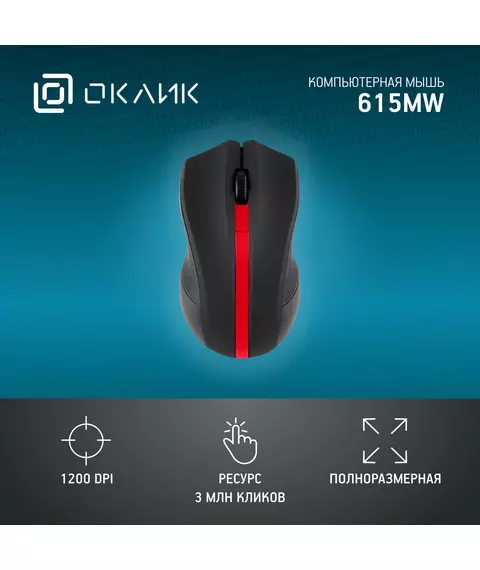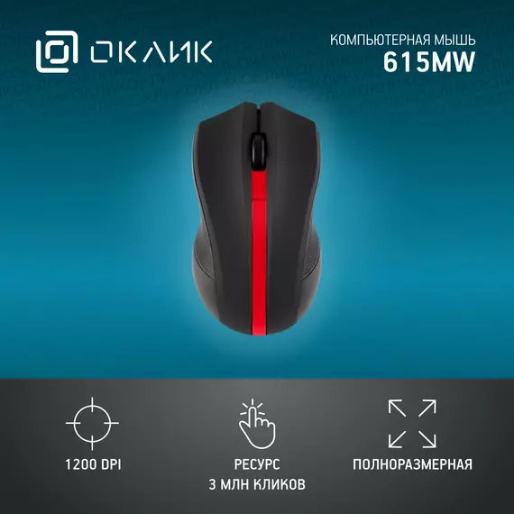 Мышь Oklick 615MW черный/красный оптическая 1200dpi беспров. USB для ноутбука 3but [412861]