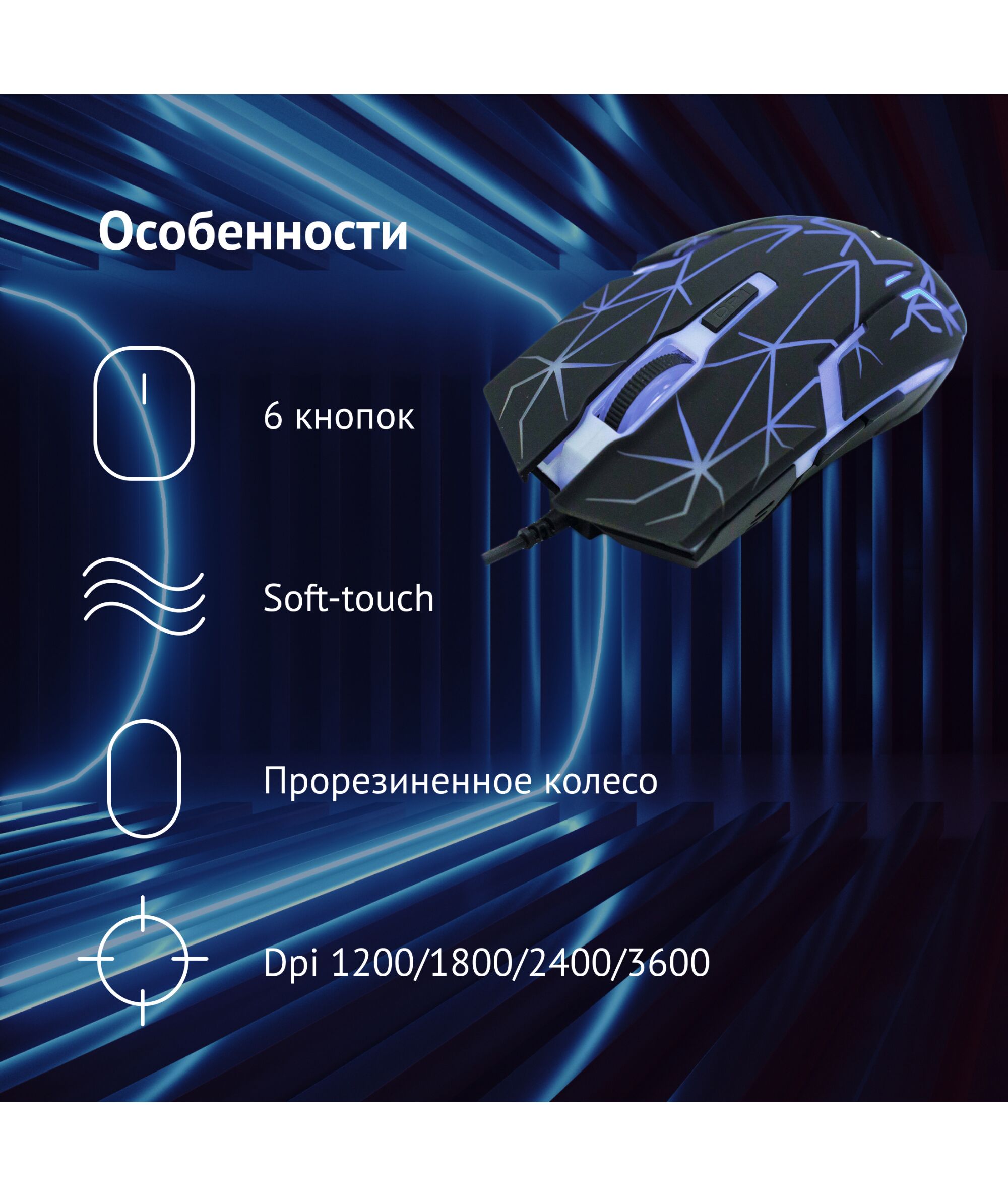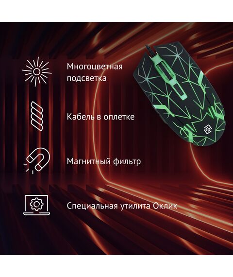 | Особенности | Удобная полноразмерная мышь подходящая как для игры так и для работы с офисными приложениями. 6 кнопок, возможность выбора оптимального разрешения, покрытие soft-touch, многоцветная, подсветка, кабель в оплетке с ферритовым фильтром. Специальное ПО на сайте производителя расширяющее возможности мыши |