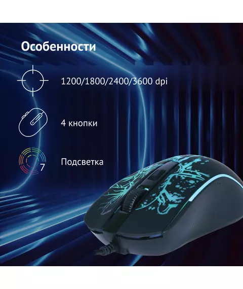 | Особенности | Удобная полноразмерная игровая мышь с возможностью выбора оптимального разрешения. Отлично работает в офисном режиме. Покрытие корпуса soft-touch, подсветка. Специально ПО расширяющее возможности мышки на сайте производителя. |