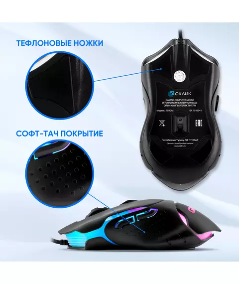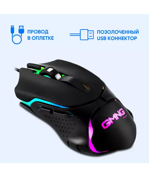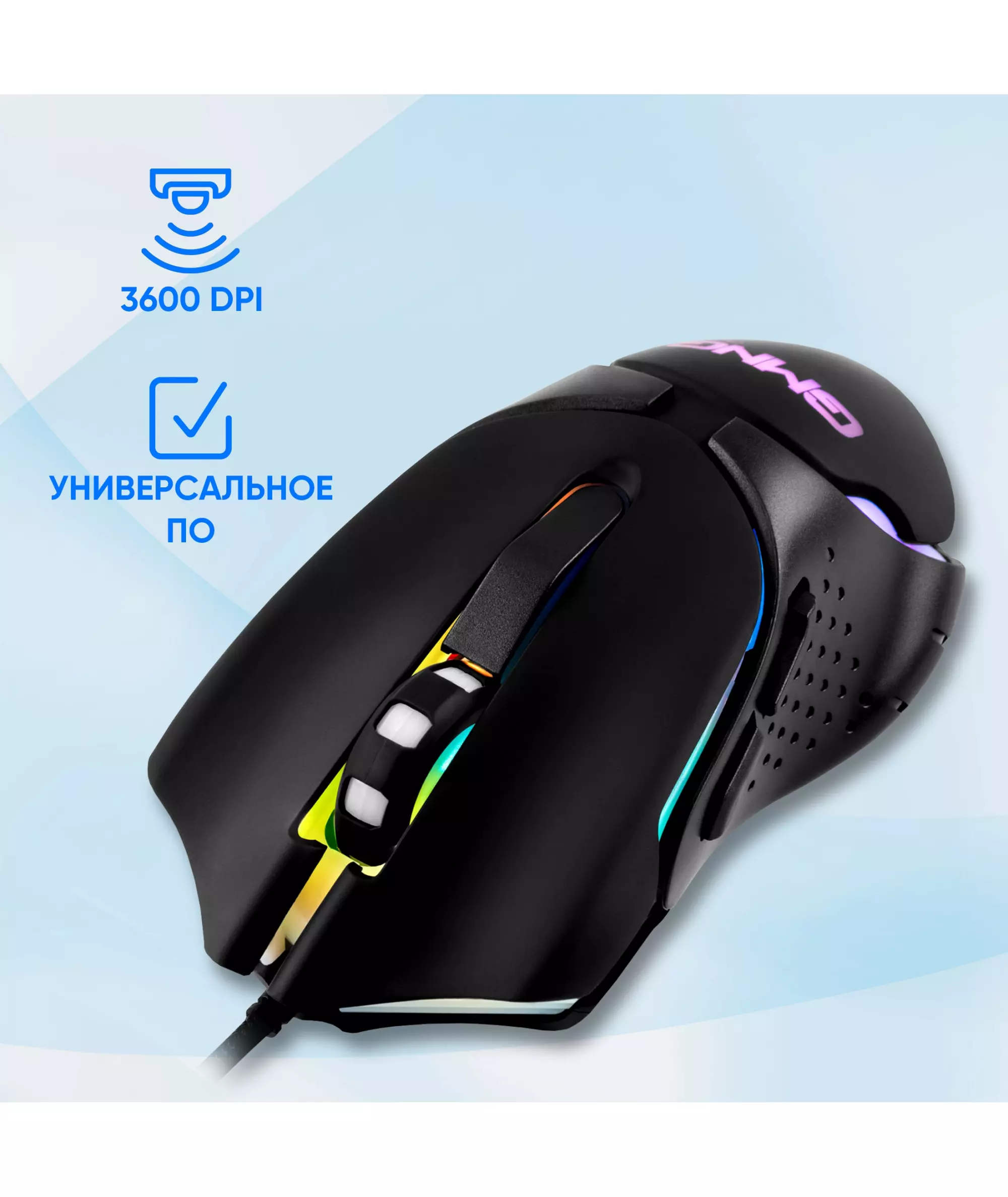 | Особенности | Игровая компьютерная мышь, настраиваемое разрешение до 3600 dpi. Провод в тканевой оплетке, позолоченный коннектор USB. Тефлоновые ножки. Дополнительные клавиши используемые и в офисном и в игровом режимах. Поверхность soft-touch. Отчетливый, тактильно приятный отклик клавиш.Многоцветная подсветка |