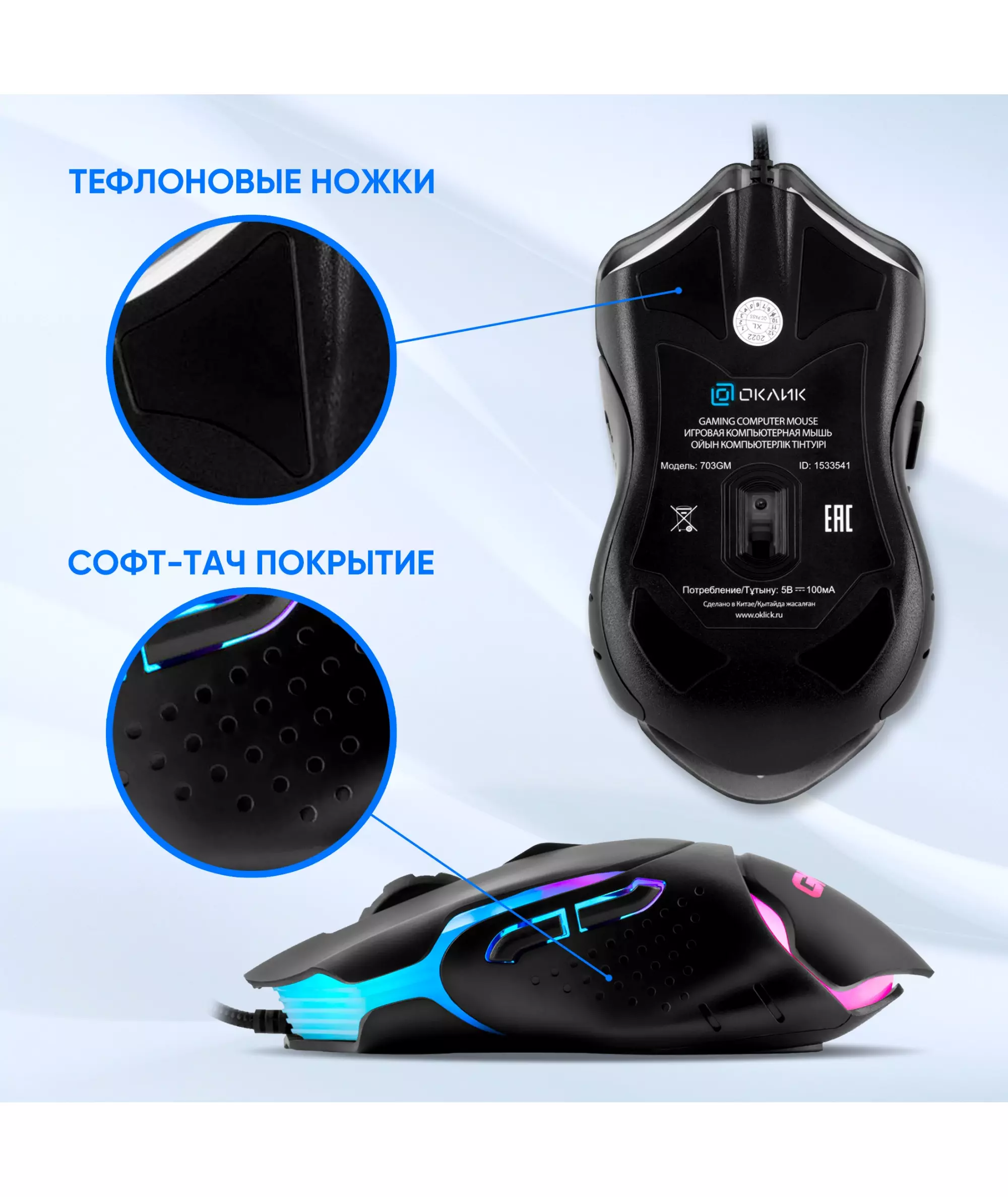 Мышь Oklick 703GM черный оптическая 3600dpi USB для ноутбука 6but [1533541]