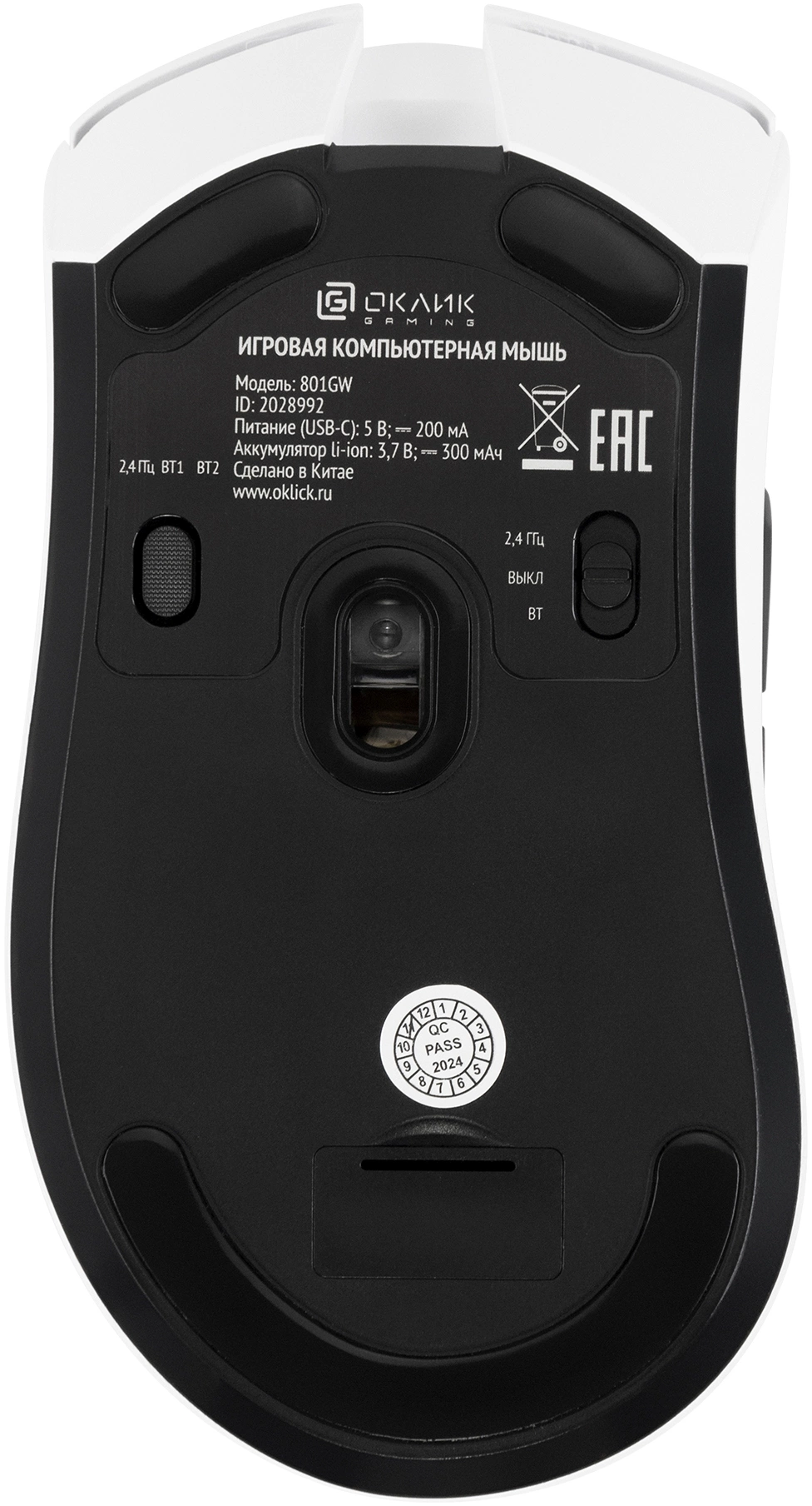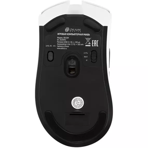 Мышь Oklick 801GW белый/черный оптическая 10000dpi беспров. BT/Radio USB 6but