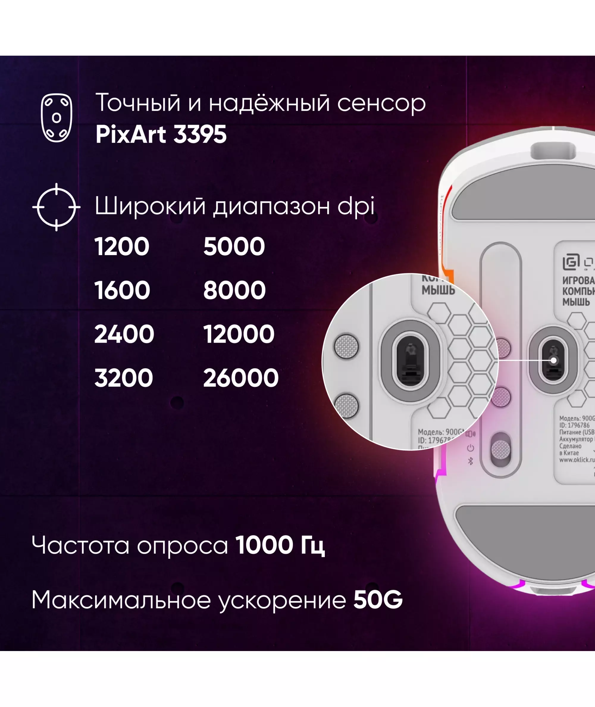 | Разрешение сенсора, макс. | 26000 dpi |