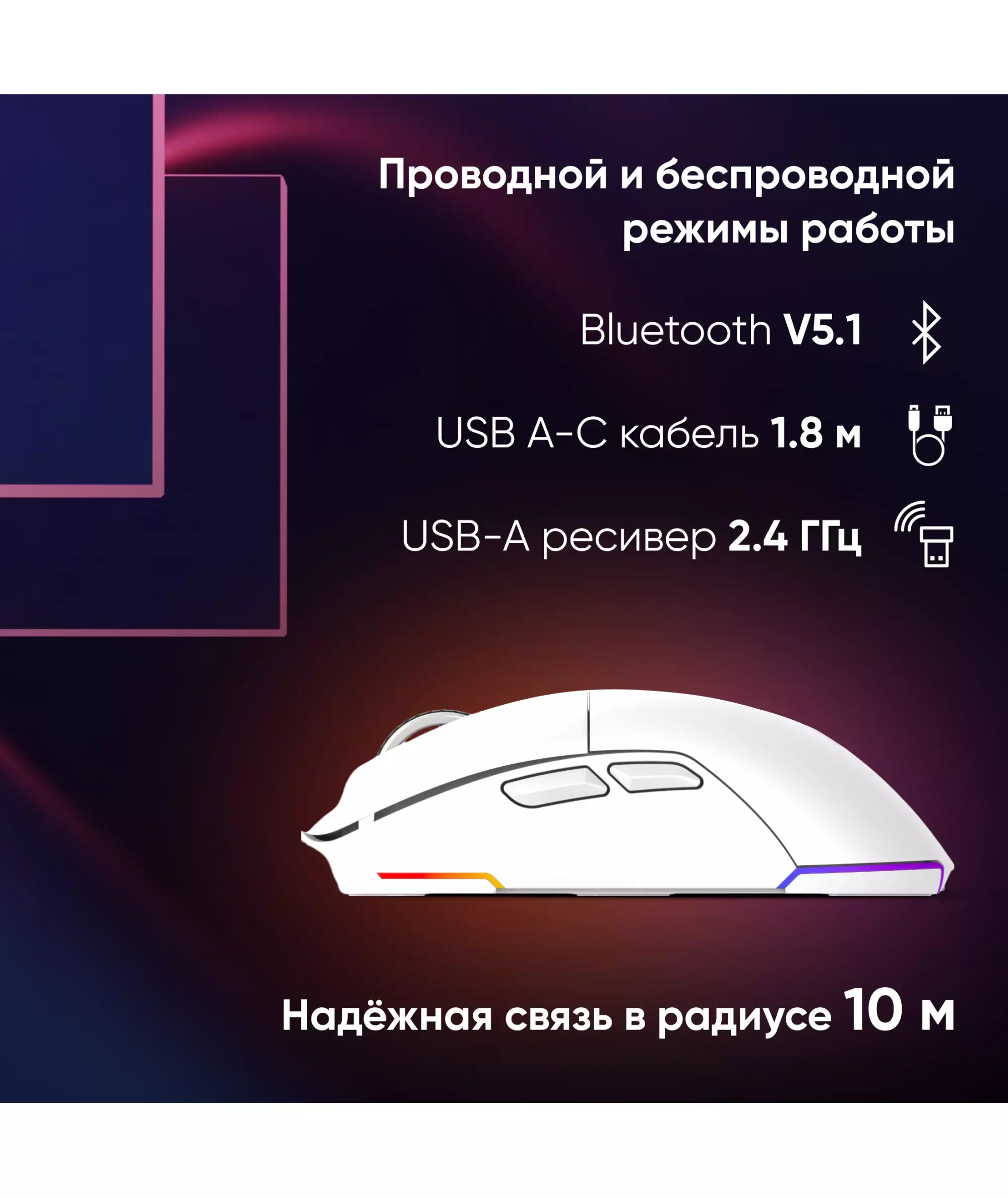 | Радиус действия мыши | 10 м |
