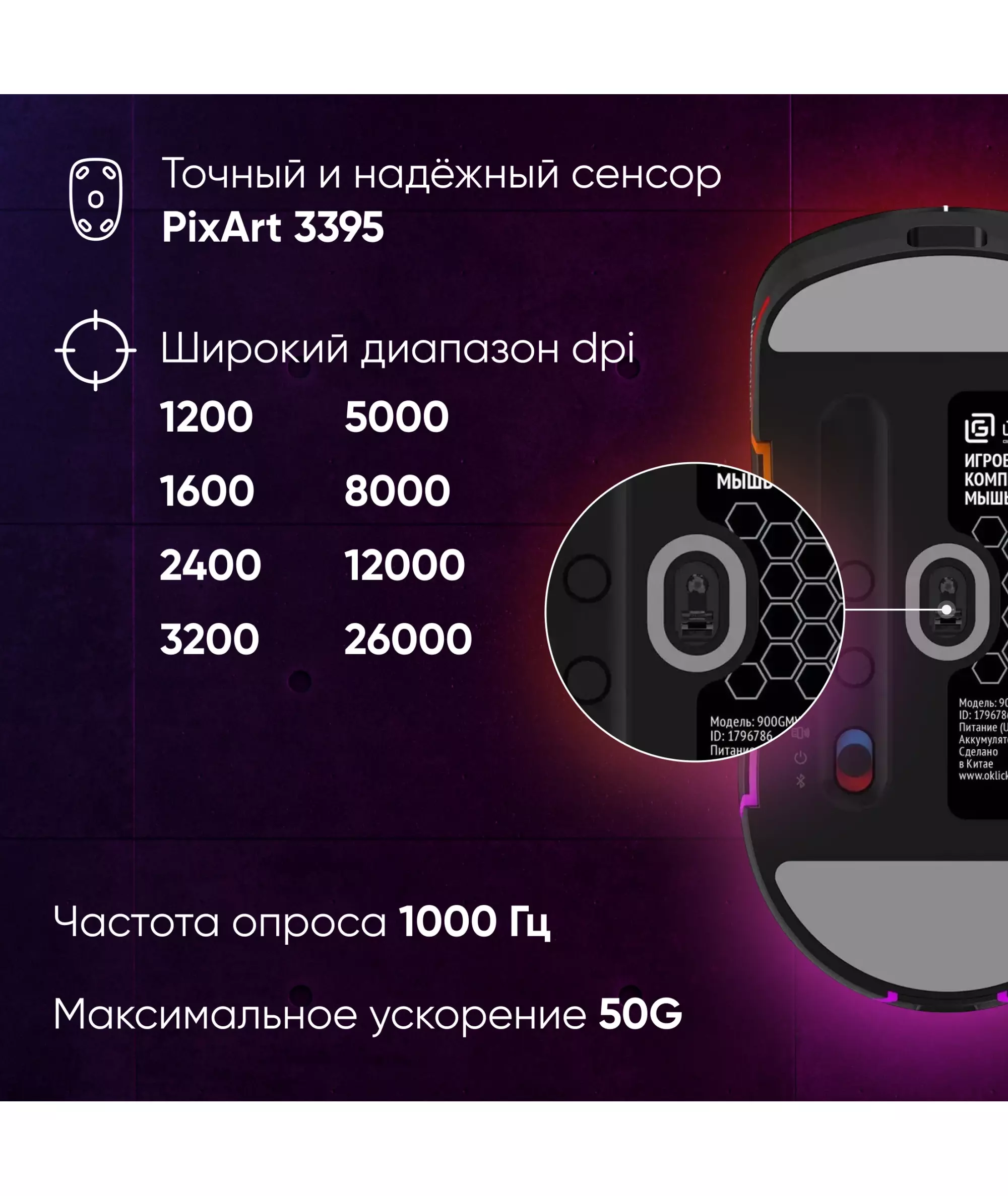 | Разрешение сенсора, макс. | 26000 dpi |