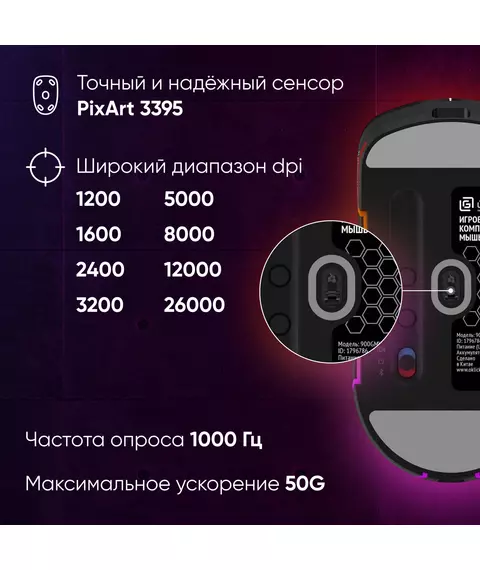 | Сенсор | PixArt PAW3395 |