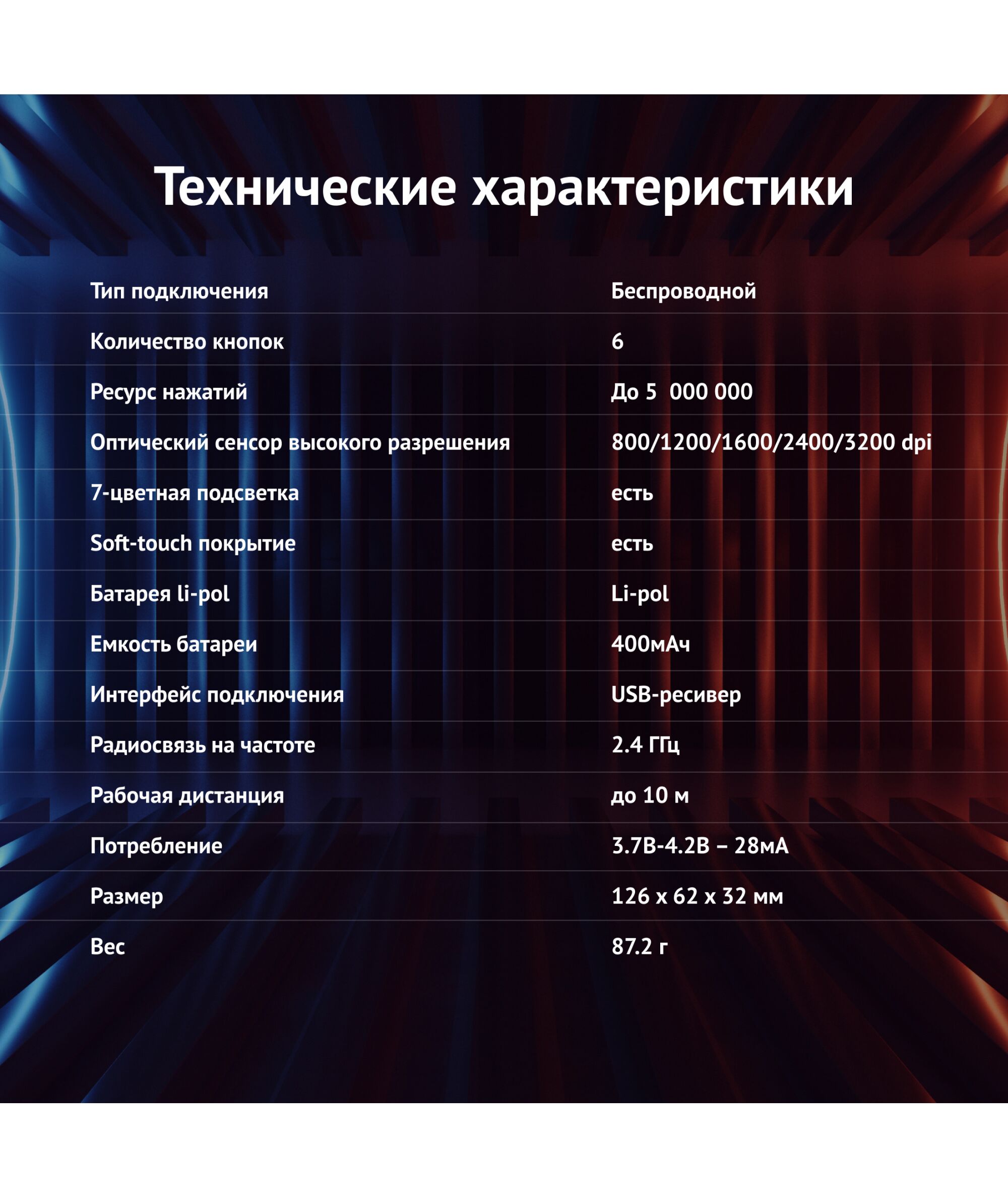 | Размеры мыши | 62x126x32мм |